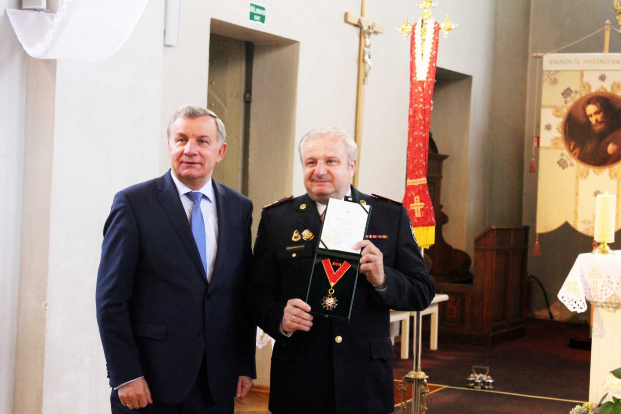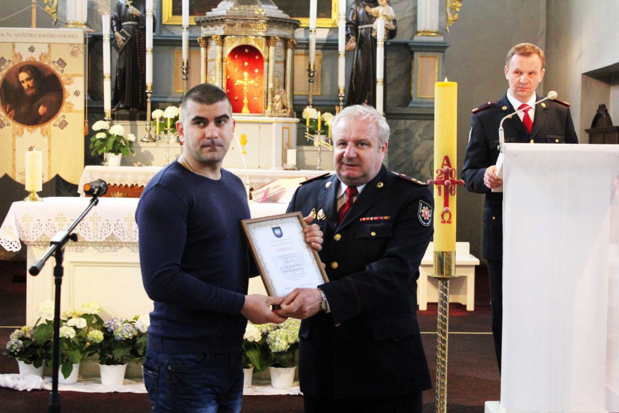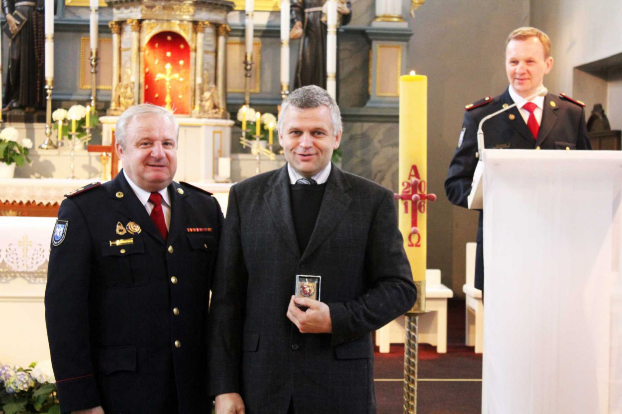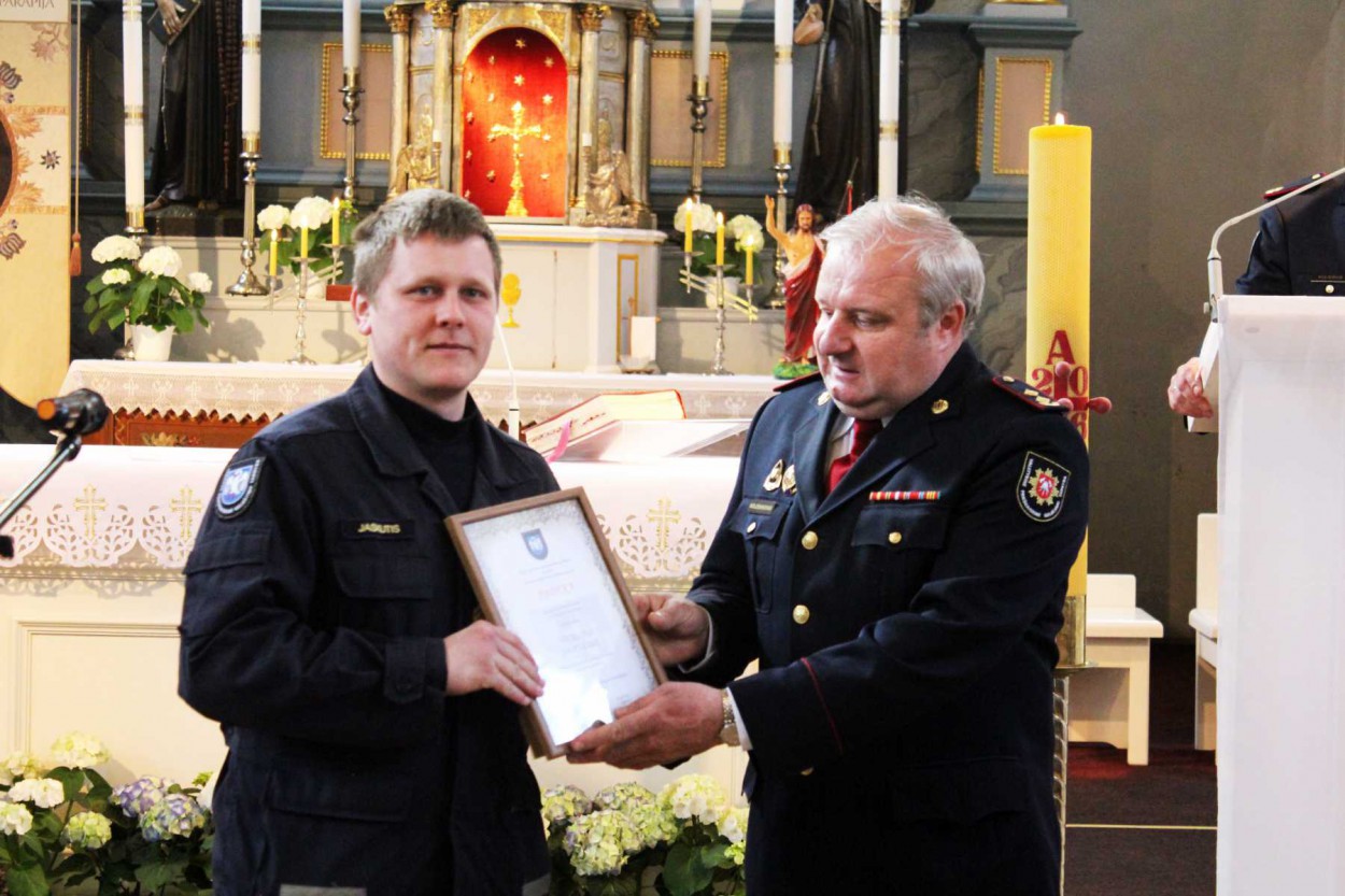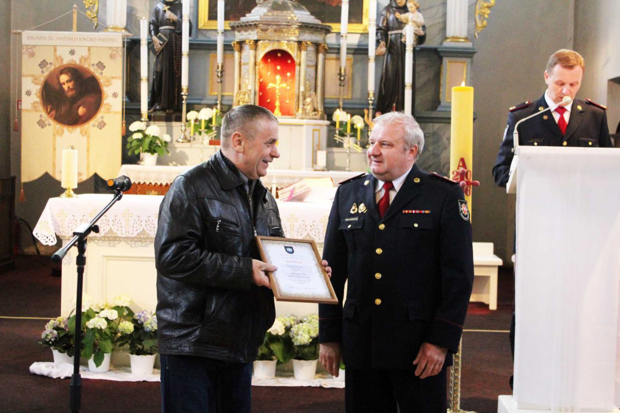Šventinio renginio bažnyčioje metu apdovanoti ugniagesiai gelbėtojai. Tiesa, svarbiausias apdovanojimas šiemet skirtas šventėje dalyvavusiam Susisiekimo ministrui Rimantui Sinkevičiui – jam Priešgaisrinės apsaugos ir gelbėjimo departamento direktoriaus įsakymu už nuopelnus valstybinei priešgaisrinei gelbėjimo tarnybai įteiktas pirmojo laipsnio kryžius „Artimui pagalbon“.