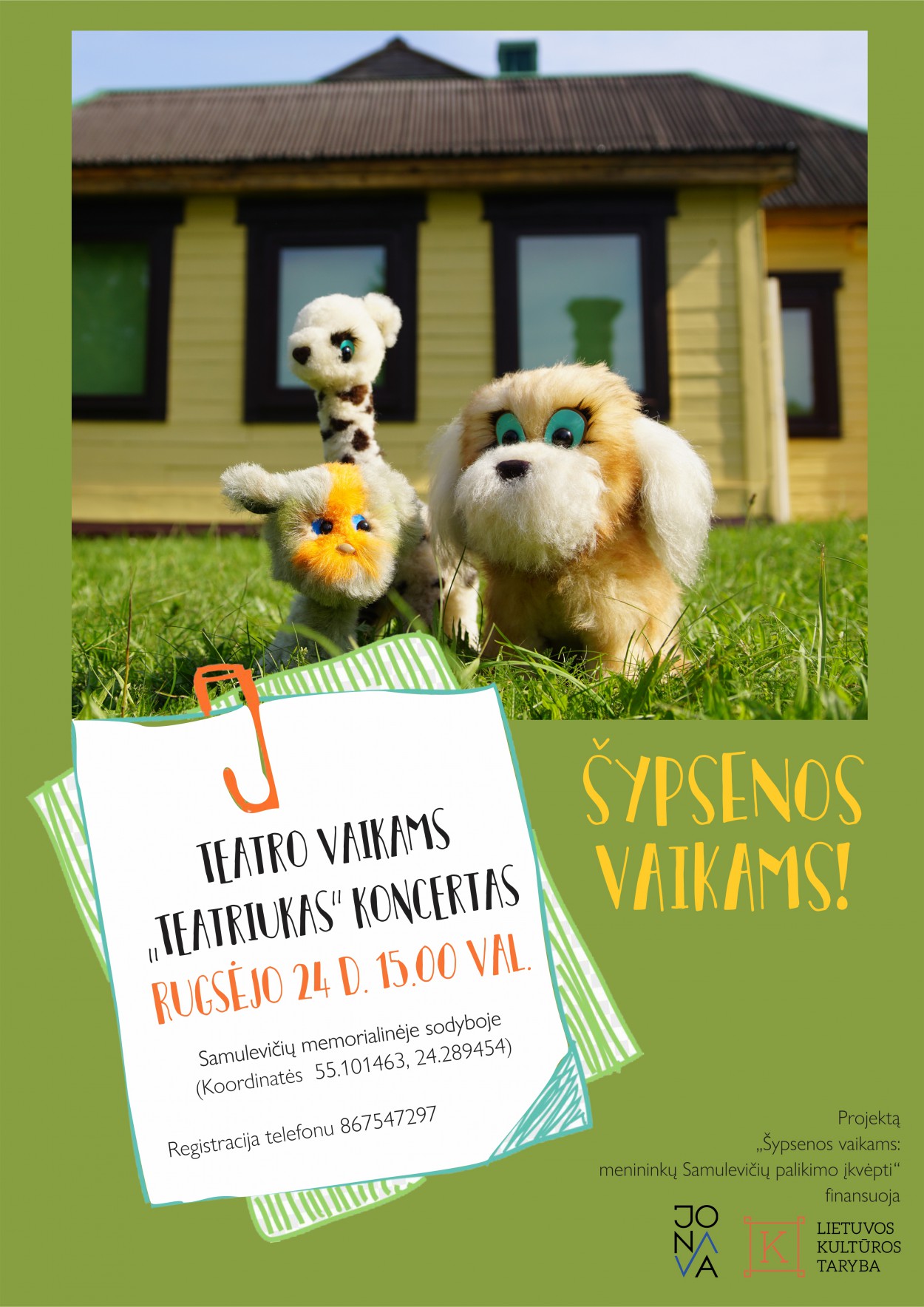 Visus, norinčius aplankyti Samulevičių sodybą, kviečiame rugsėjo 24 d. į teatro vaikams „Teatriukas“ koncertą, su kuriuo triukšmingai užbaigsime projektą.