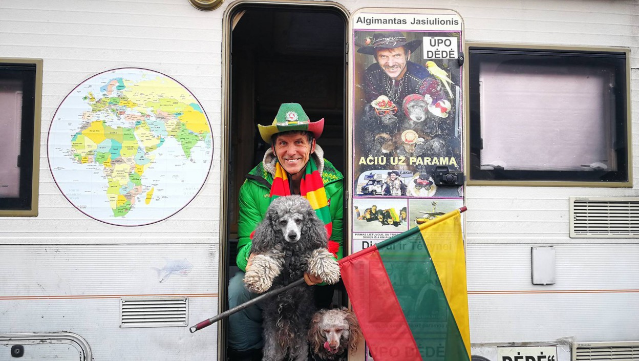 A.Jasiulionis visur važiuoja su keturiais savo keturkojais augintiniais. Kartu su gyvūnais keliautojas yra išmaišęs ir kitus pasaulio kraštus: Europą, Afriką, Aziją.