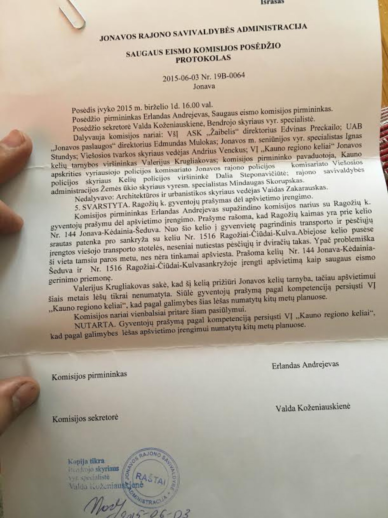 „Ar „Kauno regiono keliai“ pateikė prašymą dėl šio kelio atkarpos apšvietimo, ar šiemet tam skirta lėšų?“ – klausė Ragožių kaimo gyventojai.