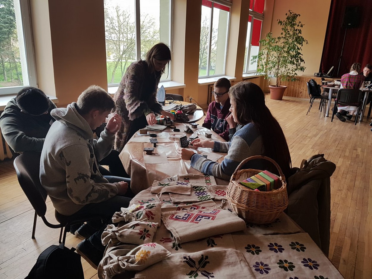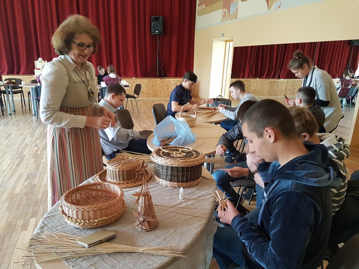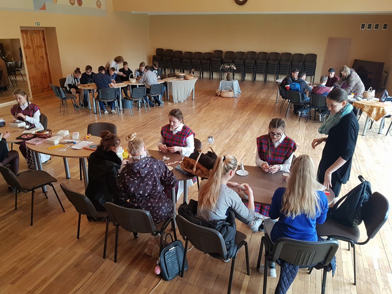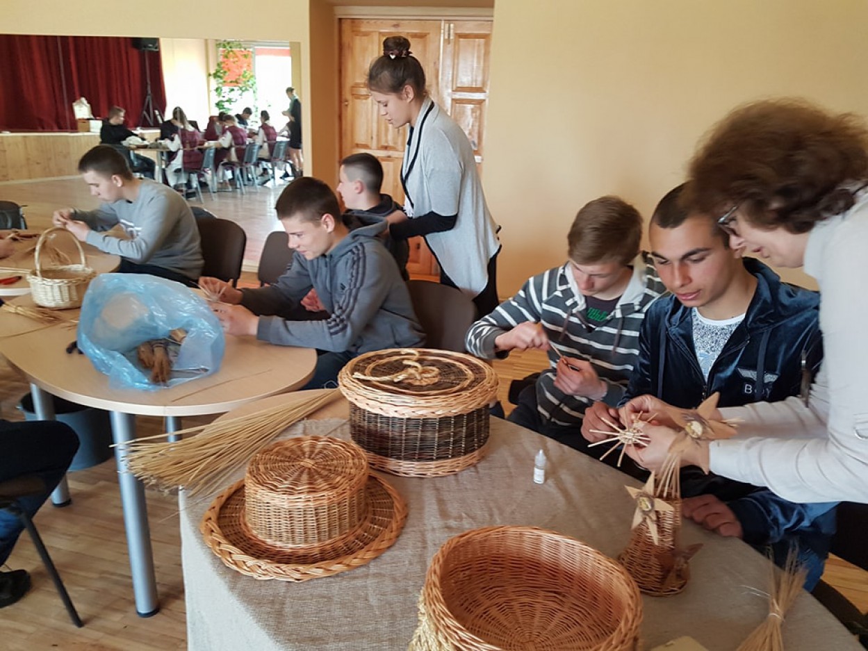 Balandžio 26 d. mokyklos aktų salėje veikė „Liaudies amatų dirbtuvės“, kuriose mokiniai galėjo atskleisti savo kūrybiškumą ir gebėjimus, kurdami įvairius gaminius, naudodami lietuvių liaudies amatų modernias technikas. Upninkų pagrindinės mokyklos technologijų mokytoja Ligita Morkūnienė kartu su savo mokiniais mokė pynimo iš vytelių amato, naudodami ne tik žilvičio vyteles bet ir storą lino siūlą. R. Samulevičiaus progimnazijos technologijų mokytoja Danguolė Lapienienė ir jos ugdytiniai mokė gaminti įvairius suvenyrus, naudodami vilnos vėlimo techniką. Su lietuviškais raštais bei jų spalvomis supažindino Jonavos Krašto muziejaus etnologė Rasa Kulytė-Libienė. Jonavos politechnikos mokyklos mokinius ji mokė marginti lininius maišelius tautiniais raštais. Veiklinimo metu mokiniai susidomėję ir susikaupę kūrė savo vienetinius ir nepakartojamus darbus.