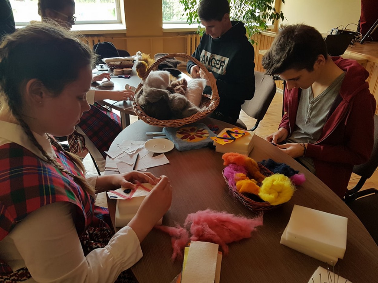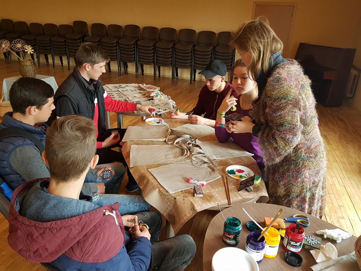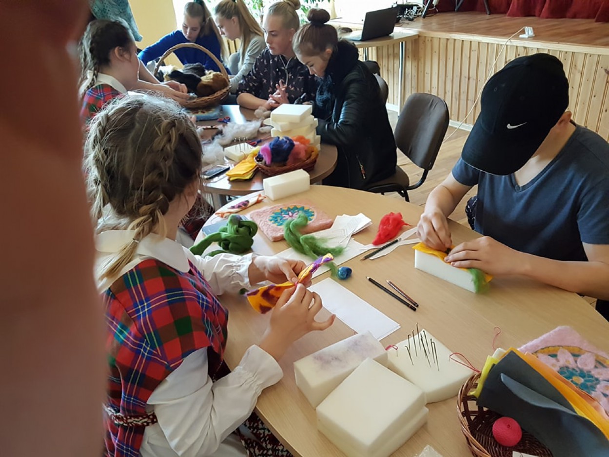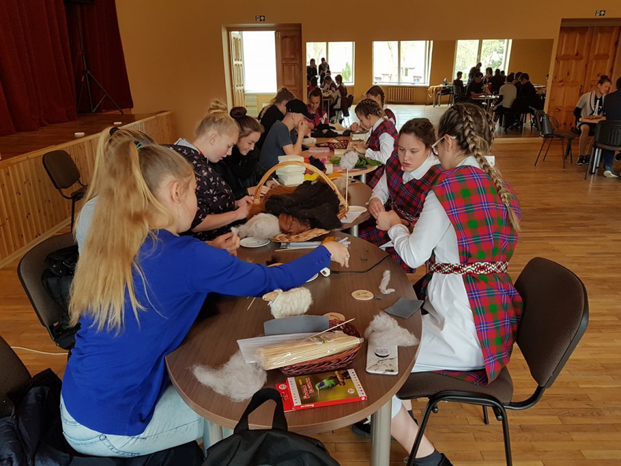 Balandžio 26 d. mokyklos aktų salėje veikė „Liaudies amatų dirbtuvės“, kuriose mokiniai galėjo atskleisti savo kūrybiškumą ir gebėjimus, kurdami įvairius gaminius, naudodami lietuvių liaudies amatų modernias technikas. Upninkų pagrindinės mokyklos technologijų mokytoja Ligita Morkūnienė kartu su savo mokiniais mokė pynimo iš vytelių amato, naudodami ne tik žilvičio vyteles bet ir storą lino siūlą. R. Samulevičiaus progimnazijos technologijų mokytoja Danguolė Lapienienė ir jos ugdytiniai mokė gaminti įvairius suvenyrus, naudodami vilnos vėlimo techniką. Su lietuviškais raštais bei jų spalvomis supažindino Jonavos Krašto muziejaus etnologė Rasa Kulytė-Libienė. Jonavos politechnikos mokyklos mokinius ji mokė marginti lininius maišelius tautiniais raštais. Veiklinimo metu mokiniai susidomėję ir susikaupę kūrė savo vienetinius ir nepakartojamus darbus.