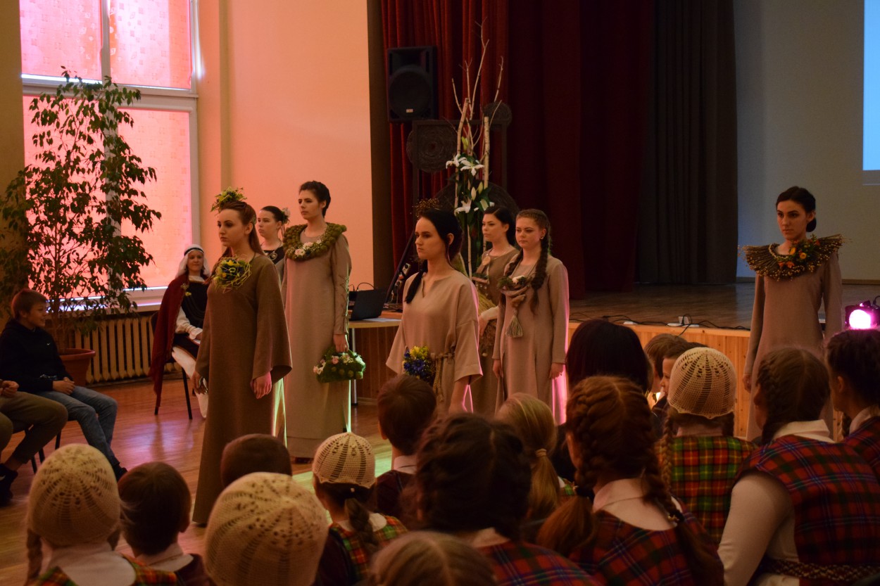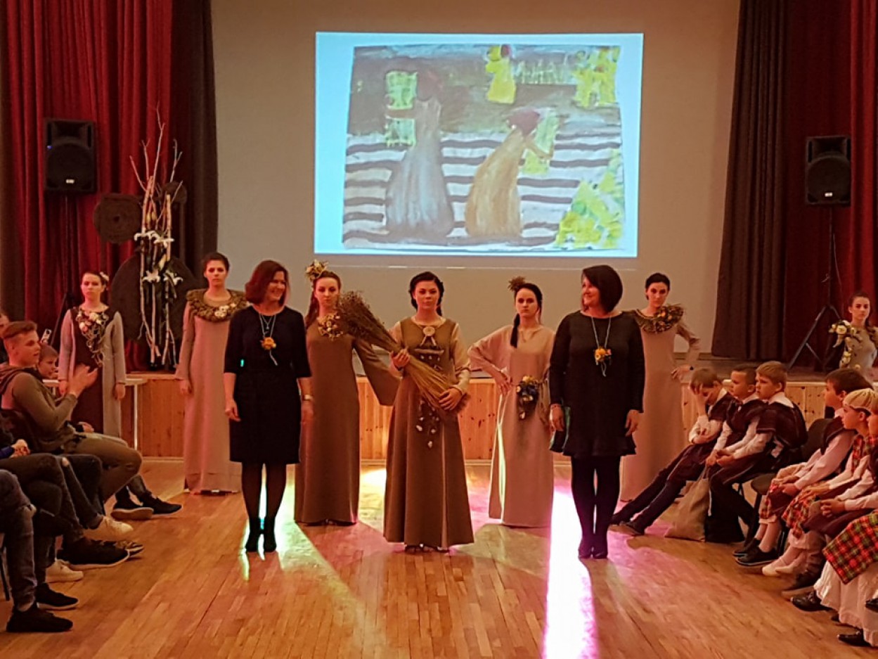 Balandžio 27 dieną aktų salėje vyko projekto „Lino spalvos“ baigiamasis renginys. Pirmoje renginio dalyje pasirodė R. Samulevičiaus progimnazijos etnokultūrinio neformalaus ugdymo būrelis „Vėrinėlis“, būrelio vadovės Rasa Petrusevičienė ir Genovaitė Jurkevičienė. Šis nuostabus kolektyvas atvyko su programa „Linksminkimės su pavasariu“, kurioje lietuvių liaudies dainomis ir šokiais perteikė lino kelią nuo grūdo iki drobės ir pristatė augalą, kaip lietuvių tautos atributą.