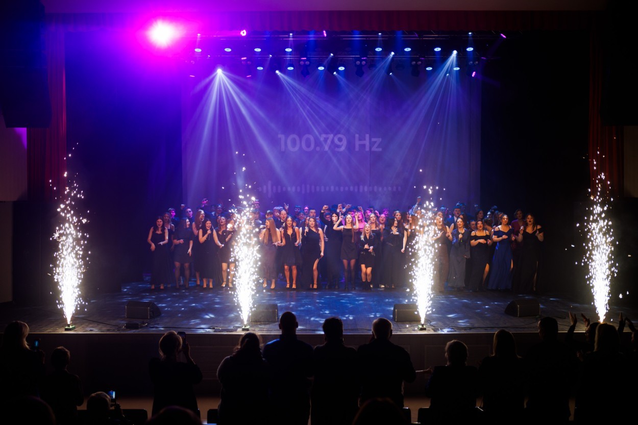 Eteryje netrūko ir nuoširdaus juoko – nuotaikingas abiturientų tėvelių pasirodymas subūrė mokytojus, mokinius ir tėvus į gyvą radijo žaidimą, kuriame reikėjo atsakyti į vedėjo klausimus. Tai buvo tikras bendruomenės dažnis, kuriame visi kalbėjo ta pačia – supratimo ir palaikymo – kalba. Originalumu ir šmaikštumu stebino mokytojai, pasirodę radijo „Mėlynojoje bangoje“. Jų improvizacijos, persmelktos humoro ir nuoširdžių linkėjimų, tapo dar vienu gražiu akordu šventiniame eteryje. „Vienuoliktokų pulsas“ užliejo salę jaunatviška energija – šokiais, melodijomis ir gyvu ritmu, primenančiu, kad radijas – tai judėjimas ir gyvybė.