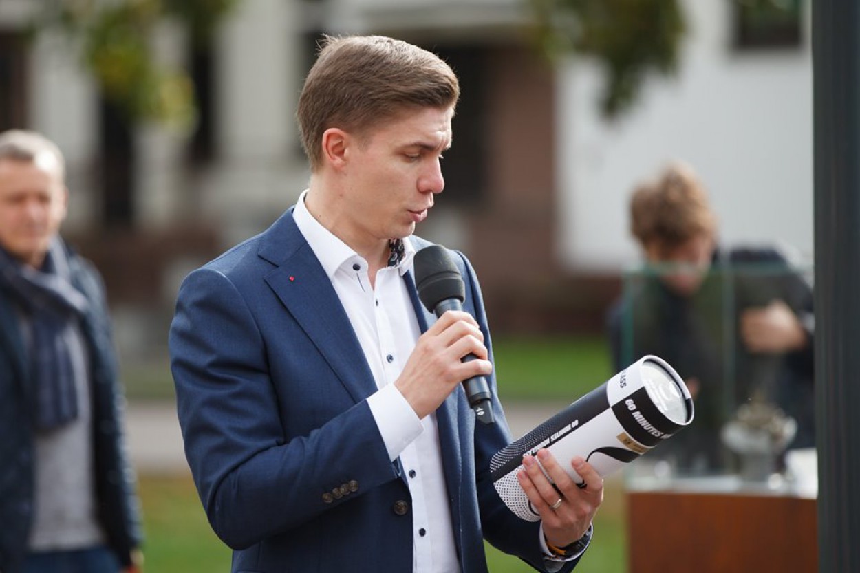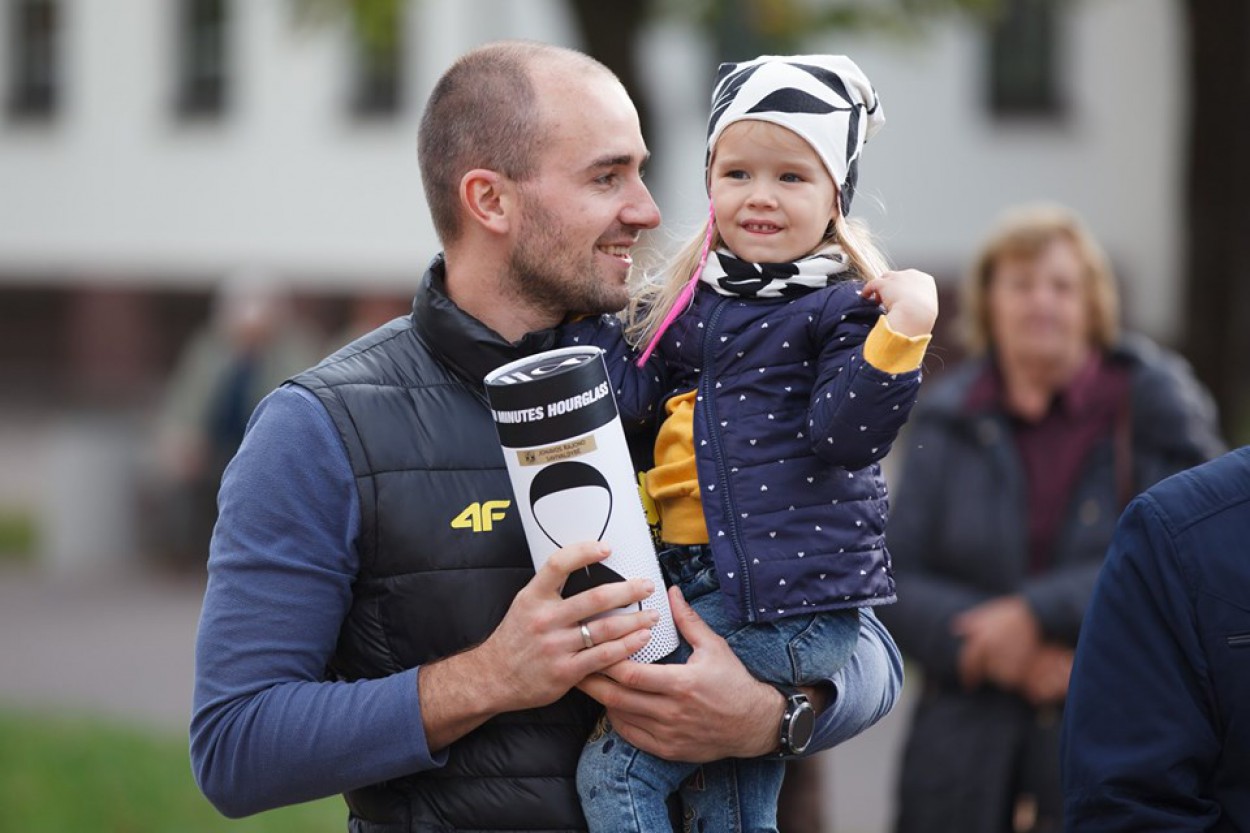 Sekmadienį meras M. Sinkevičius atskirai padėkojo Jonavos miesto seniūnui Povilui Beišiui, kuris buvo atsakingas už aikštelės įrengimą. Meras seniūnui įteikė simbolinį smėlio laikrodį, „kuris jau skaičiuoja laiką iki kitų pokyčių".
