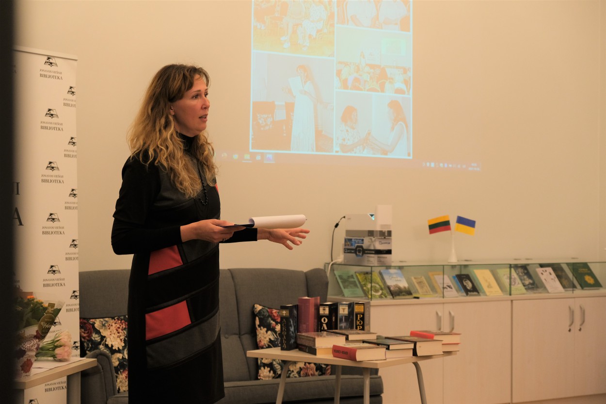 Akylesniems bibliotekos lankytojams jau pažįstama rašytoja, į Jonavą atvykusi iš gimtojo Charkovo, šiandien pristatė Lietuvoje vykdytą projektą ir papasakojo apie jam skirtus renginius, susitikimus su vaikais ir suaugusiaisiais, vykusius keletą mėnesių. Neseniai bibliotekoje organizuota netradicinė kūrybinio rašymo pamoka gimnazistams – vienas projekto renginių.