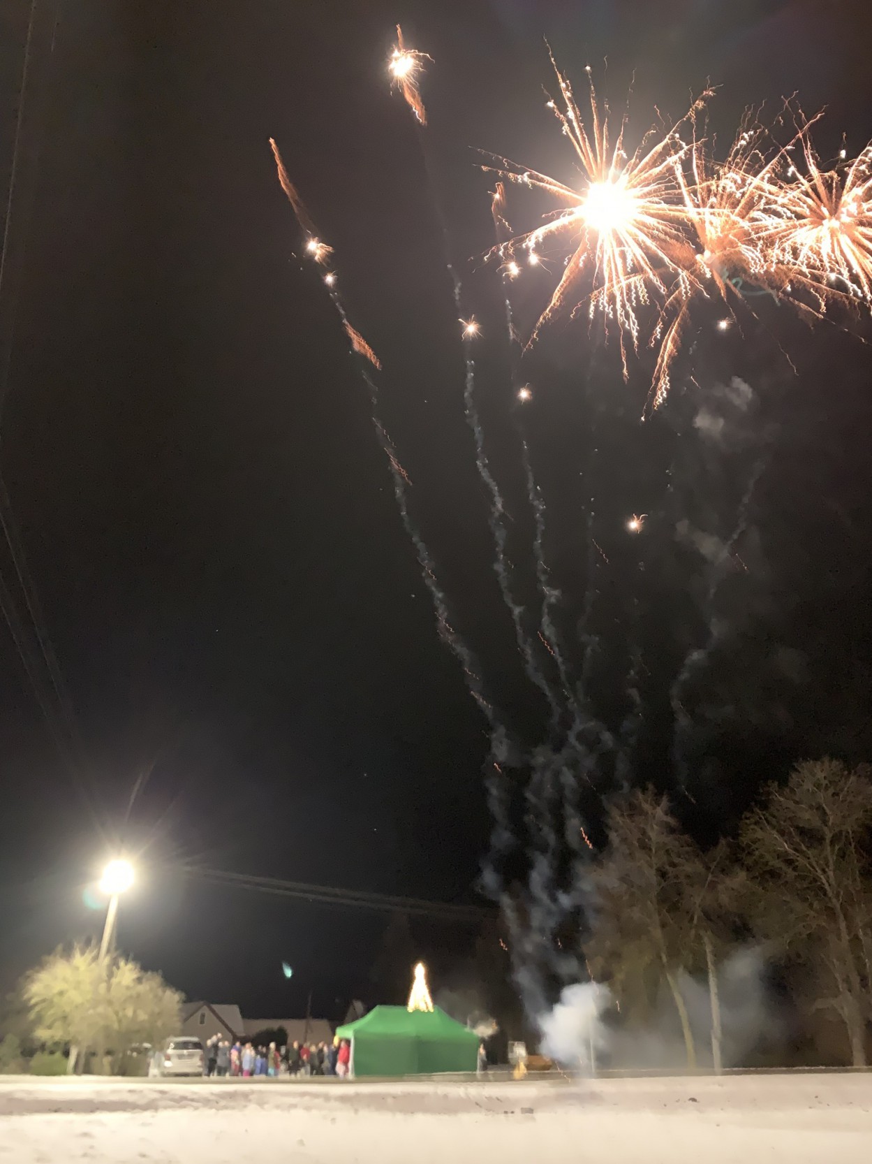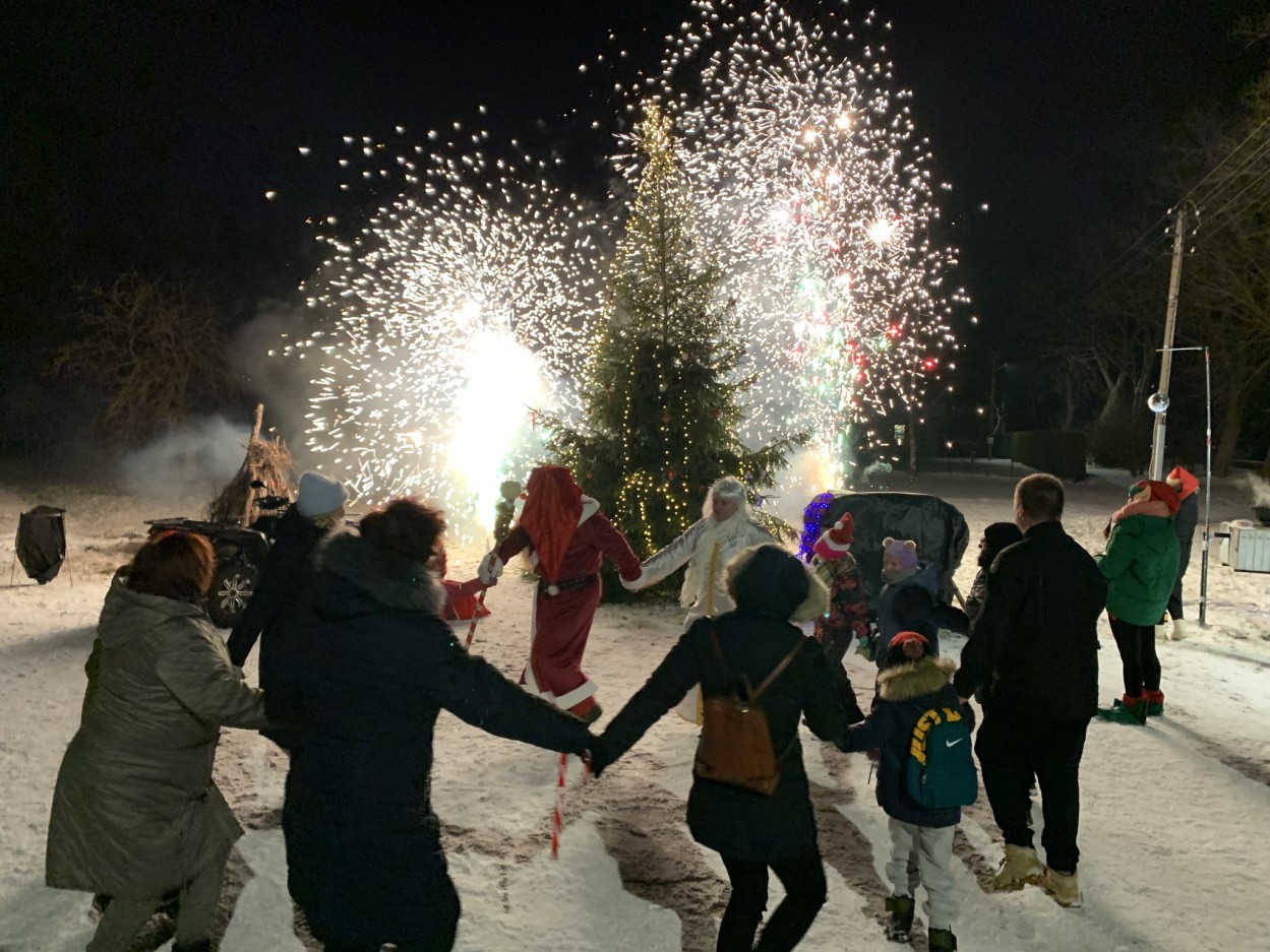 Kalėdų Seneliui su Snieguole ir prie jų prisijungusiems šventės dalyviams ėmus skaičiuoti paskutines sekundes iki eglutės įžiebimo momento, dangų nušvietė spalvingi fejerverkai.