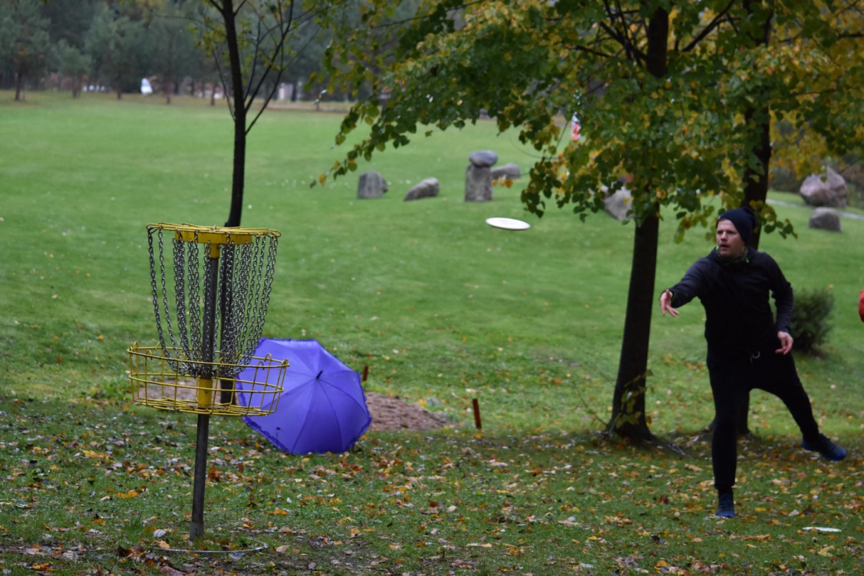 Nors buvo itin šlapia ir tiesiog pliaupė lietus, bet visą dieną užtrukęs jau tradiciniu tampantis turnyras „Šveicarijos ruduo 2016“ pritraukė nemažą skaičių dalyvių ne tik vietinių šveicarų ar jonaviečių, bet ir svečių iš Kauno, Vilniaus, Klaipėdos, Zarasų. Ši tradicija tampa kasmetine, nes pasak sodybos šeimininko Tado Survilos, šios sporto šakos mėgėjai suvažiuoja į sezono uždarymą, nors diskgolfą galima žaisti visais metų laikais.