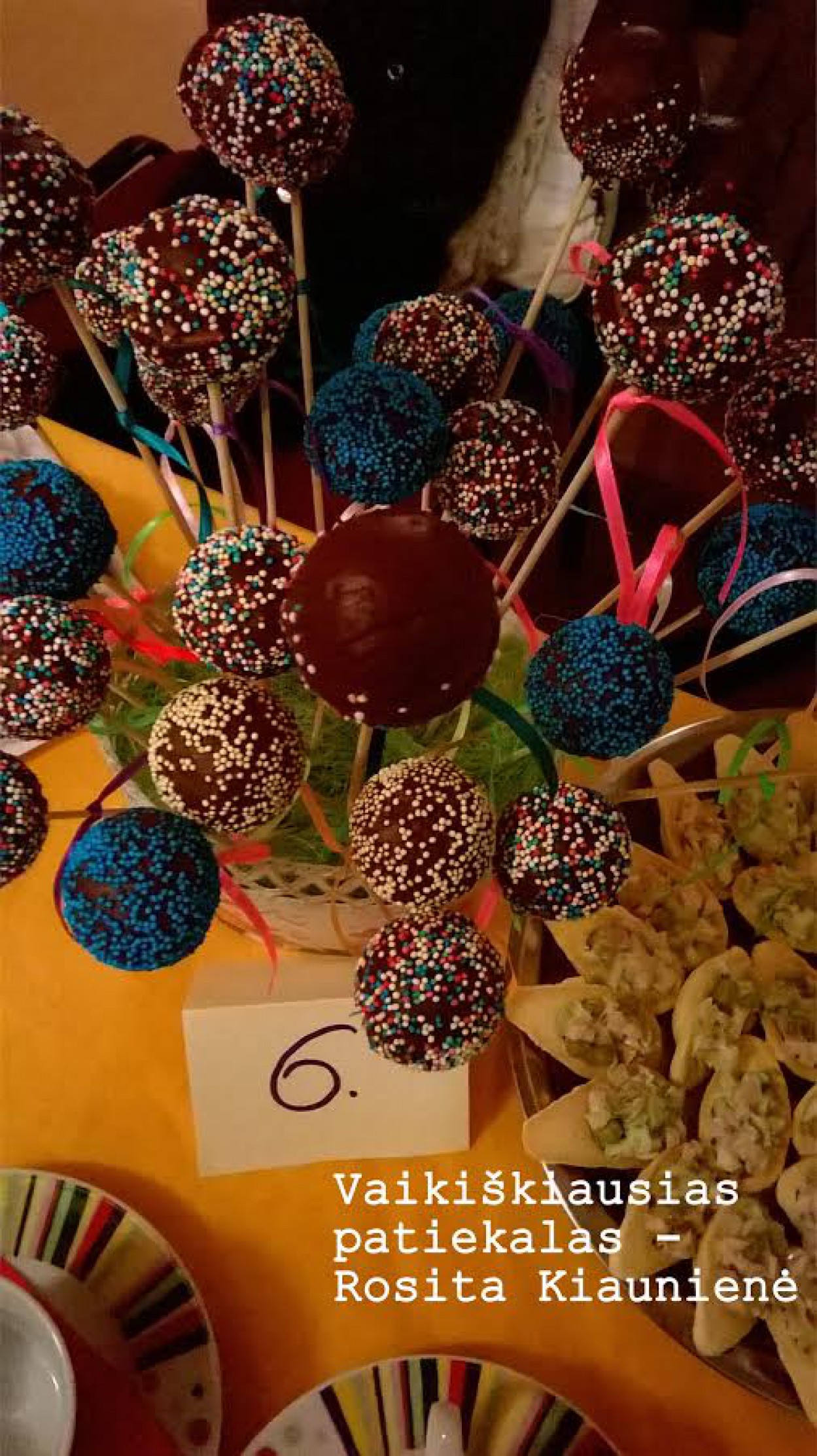 Estetiškiausio patiekalo nominaciją laimėjo Sonata Bubinienė, pagaminusi ir patiekusi saldųjį pasakų namelį su nykštukais, skaniausio patiekalo nominacija atiteko Smiltei Glinskaitei, iškepusiai vaflius. Sočiausio patiekalo nominacija džiaugėsi Vaida Janonienė. Ši moteris šventei dar paruošė savo rankomis pagamintų atvirukų parodą, kuriuos spalvina „Spalvotu smėliu“. Vaikiškiausio patiekalo nominacija atiteko Rositai Kiaunienei, lietuviškiausio - Vilmai Ugianskienei, kūrybiškiausio - Danutei Kolujanskienei, sveikuolio patiekalas buvo pripažintas Ramutės Šalkauskienės, gaiviausias patiekalas - jogurto tortas - pripažintas Marytės Budrevičienės gaminys, išradingiausios kompozicijos nominaciją laimėjo Svetlana Bereišienė.