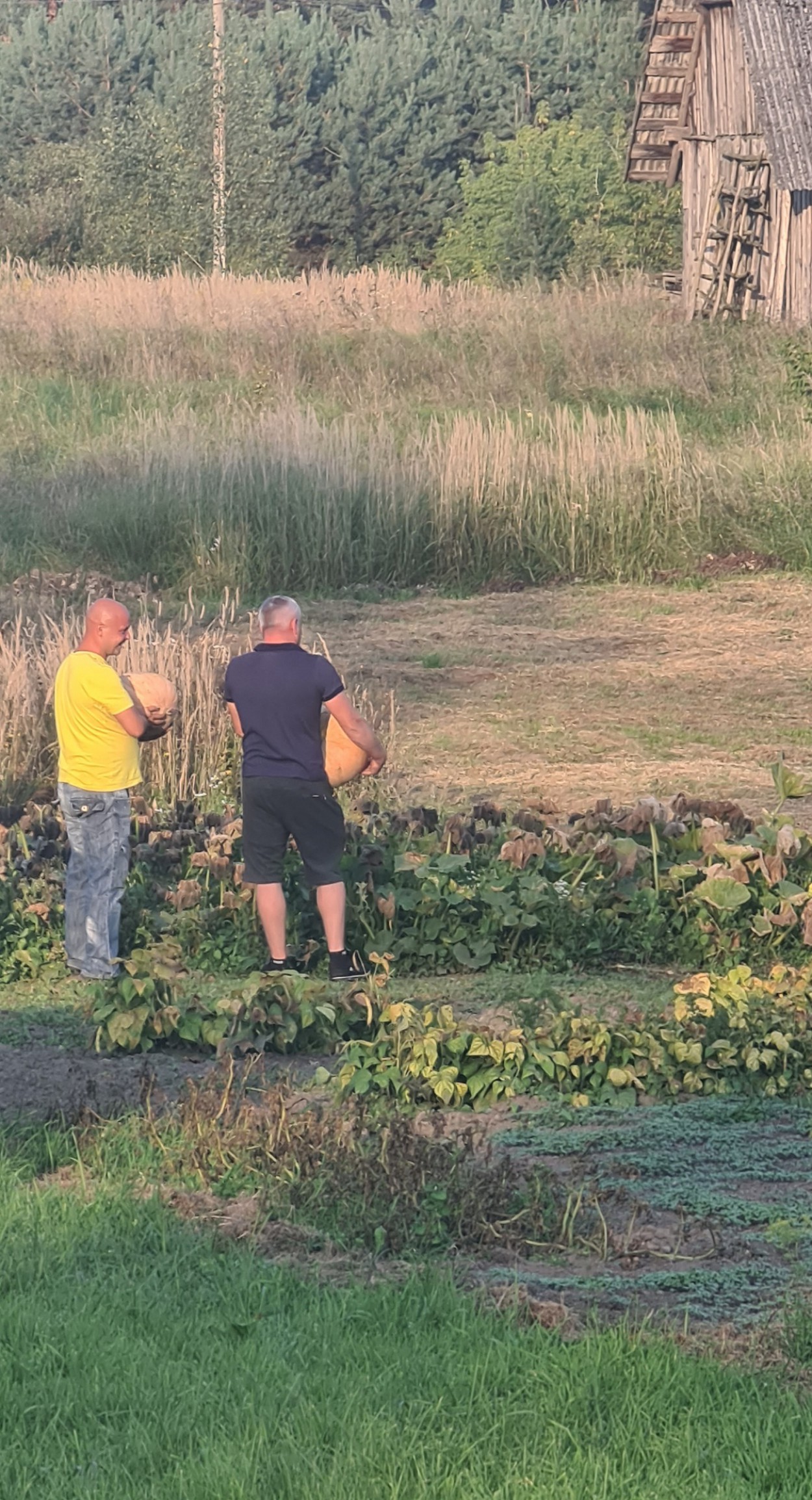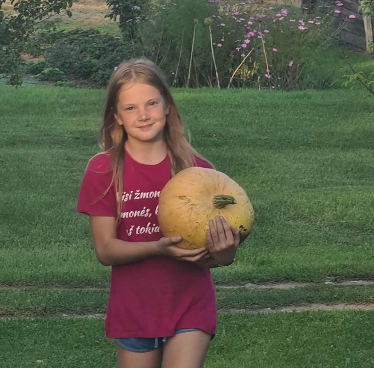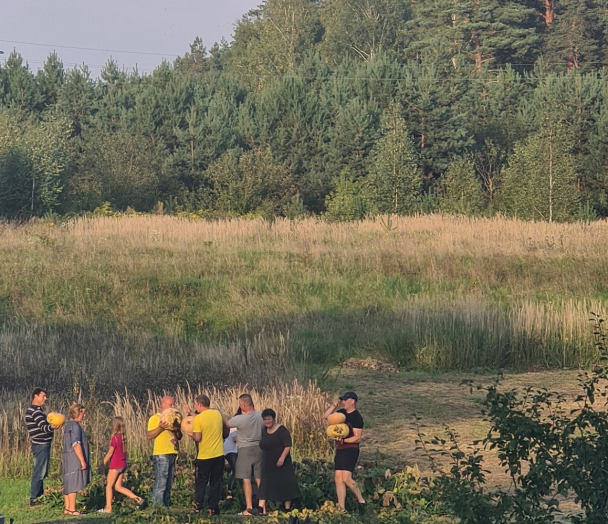 Kiemo šeimininkė R. Matkūnienė visus pakvietė i savo daržą ieškoti ir parnešti po moliūgą, tad visi dalyviai suskubo į moliūgų lauką ieškoti didžiausio moliūgo.