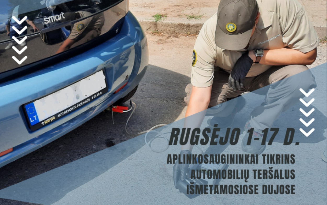 Aplinkos apsaugos departamento pareigūnai rugsėjį atliks anglies monoksido (CO) kiekio išmetamosiose dujose matavimus automobilių su benzininiais varikliais ir išmetamųjų dujų dūmingumo matavimus automobilių su dyzeliniais varikliais, įmonių ir fizinių asmenų veiklos vietose.