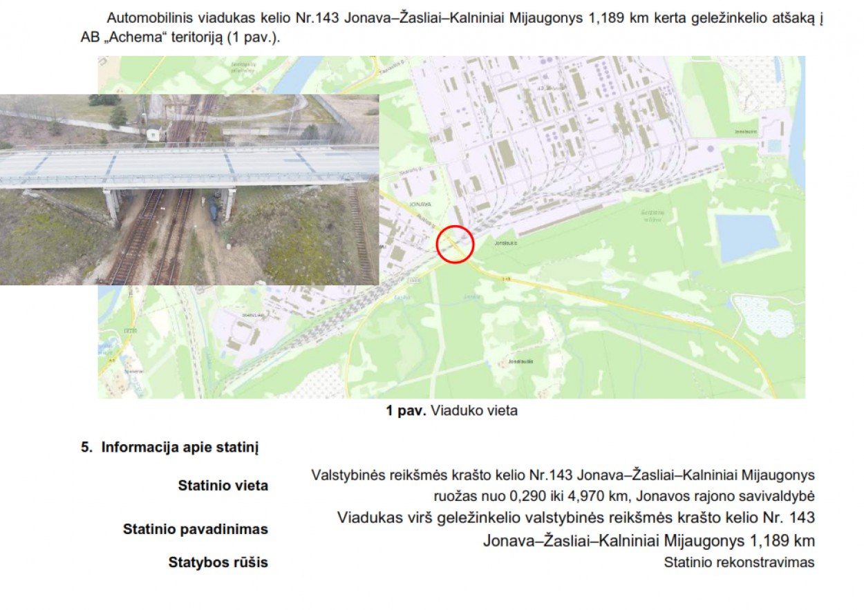 Lietuvos automobilių kelių direkcija (LAKD) prie Susisiekimo ministerijos pristato Valstybinės reikšmės krašto kelio Nr. 143 Jonava-Žasliai-Kalniniai Mijaugonys 1,189 km esančio viaduko virš geležinkelio rekonstravimo projektą ir kviečia visuomenę dalyvauti svarstant statinių (jų dalių) projektinius pasiūlymus.