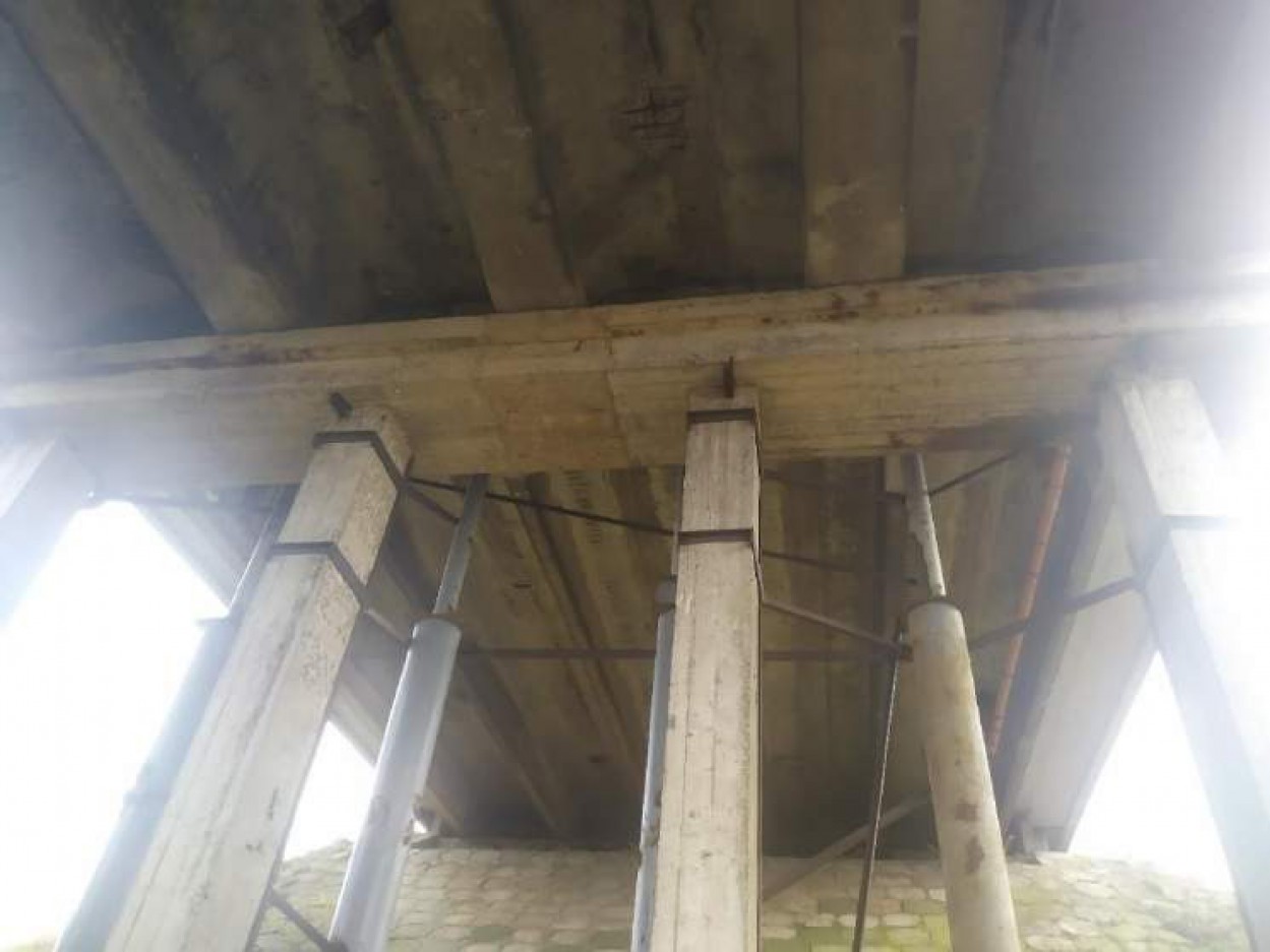 „Pirmame ir trečiame tarpatramiuose matosi koroduojanti sijų armatūra, betonas aptrupėjęs, per mažas betono apsauginis sluoksnis. Antrame tarpatramyje sijų sumonolitinimo ruožuose koroduoja armatūra, vietomis ištrupėjęs betonas. Viaduko konstrukcijos paveiktos aplinkos poveikio. Deformaciniai pjūviai prakiurę. Nutrupėjęs turėklinių bortų apsauginis betono sluoksnis, koroduoja atsidengusi armatūra, nusidėvėjusi šalitilčio plokščių danga. Lietaus vandens nuvedimo sistema susidėvėjusi, gali pradėti drėkti laikančiosios konstrukcijos. Krantinių atramų apsauginis betono sluoksnis nutrupėjęs, koroduoja atsidengusi armatūra. Tarpinių atramų rygeliai supleišėję, apsauginis betono sluoksnis nutrupėjęs, koroduoja atsidengusi armatūra. Tolimesniam laikančiųjų konstrukcijų deformacijų suvaržymui įrengtas papildomas laikinas išramstymas. Viaduko kūgiai neprižiūrėti, apaugę augmenija, šlaito tvirtinimo elementai netvarkingi. Techniniai laiptai nesaugūs, nėra įrengti turėklai.