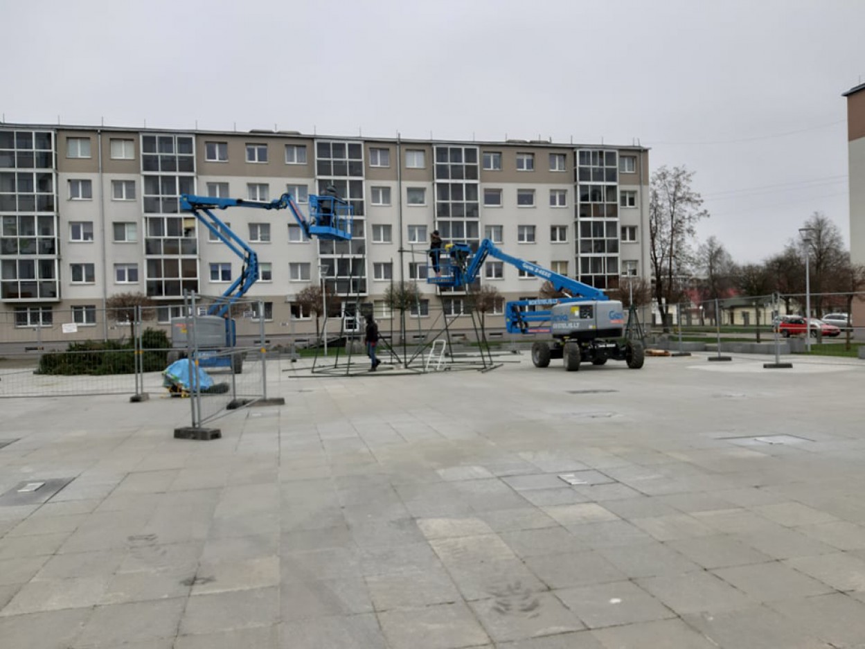 Dar praėjusios savaitės pabaigoje pagrindinės Jonavos gatvės pradėjo alsuoti šventine dvasia – specialiomis dekoracijomis sužibo tiltas per Nerį, J. Basanavičiaus, Žeimių gatvės šviestuvai. Netrukus pradės matytis ir svarbiausio puošybos elemento, t.y. kalėdinės eglutės kontūrai – šiandien, lapkričio 25-ąją, į Sąjūdžio aikštę atvežtas jos karkasas.