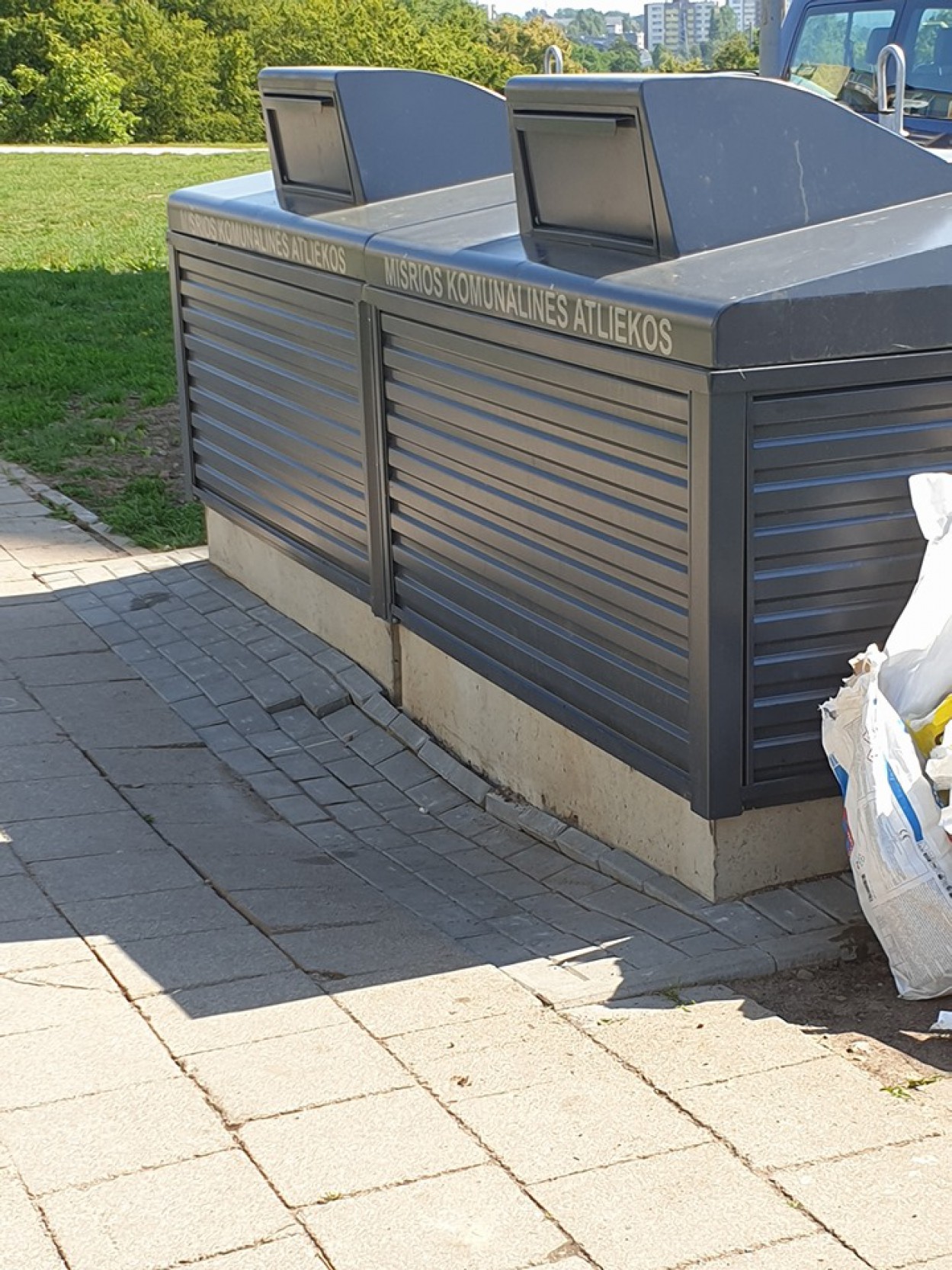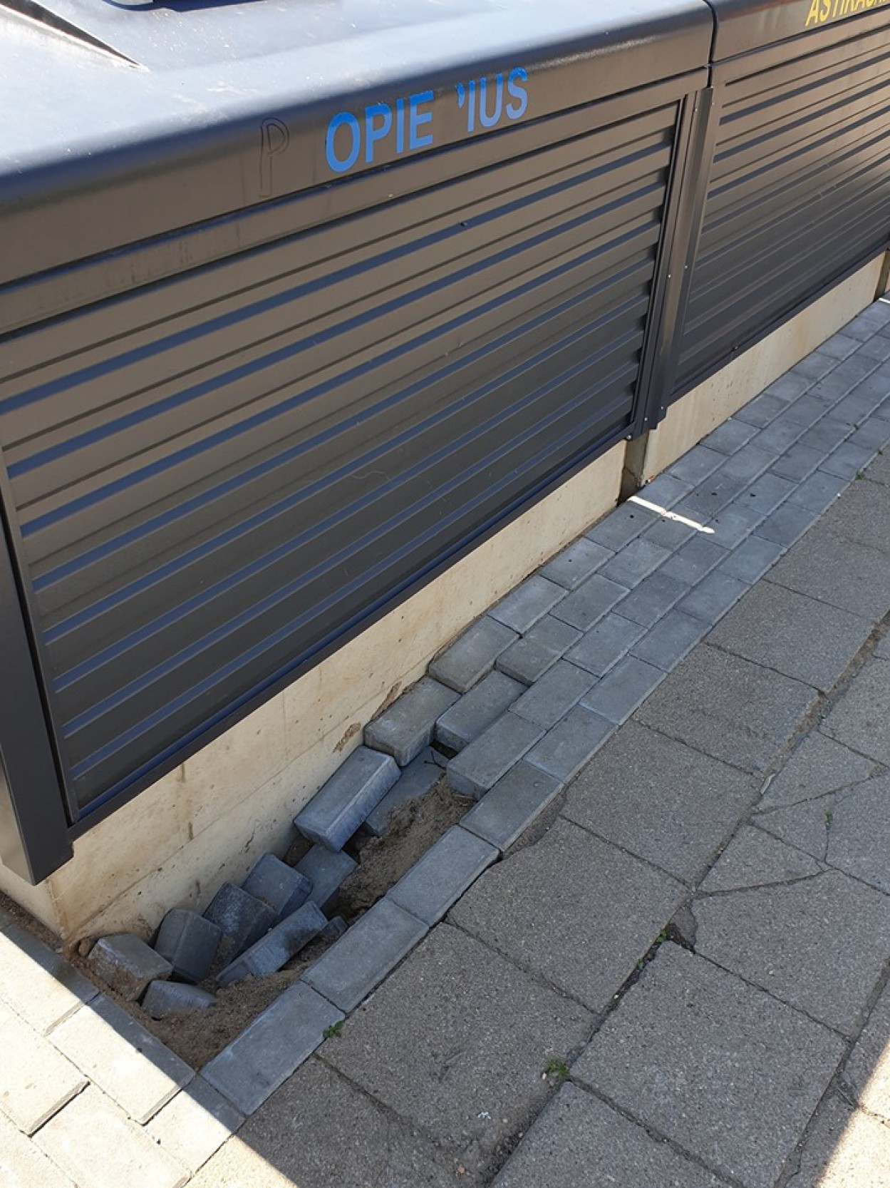 ,,Prie Chemikų gatvės 114 namo pastatyti konteineriai. Šalia jų suklotos trinkelės – išsikraipė. Nieks nežino, ar jos nenugarmės gilyn į pačius konteinerius. Manau, jog kyla pavojus ir žmonių saugumui. Toks vaizdas, kad svarbiausia buvo ne kokybė, o kiekybė“, - kalbėjo Rita Z.