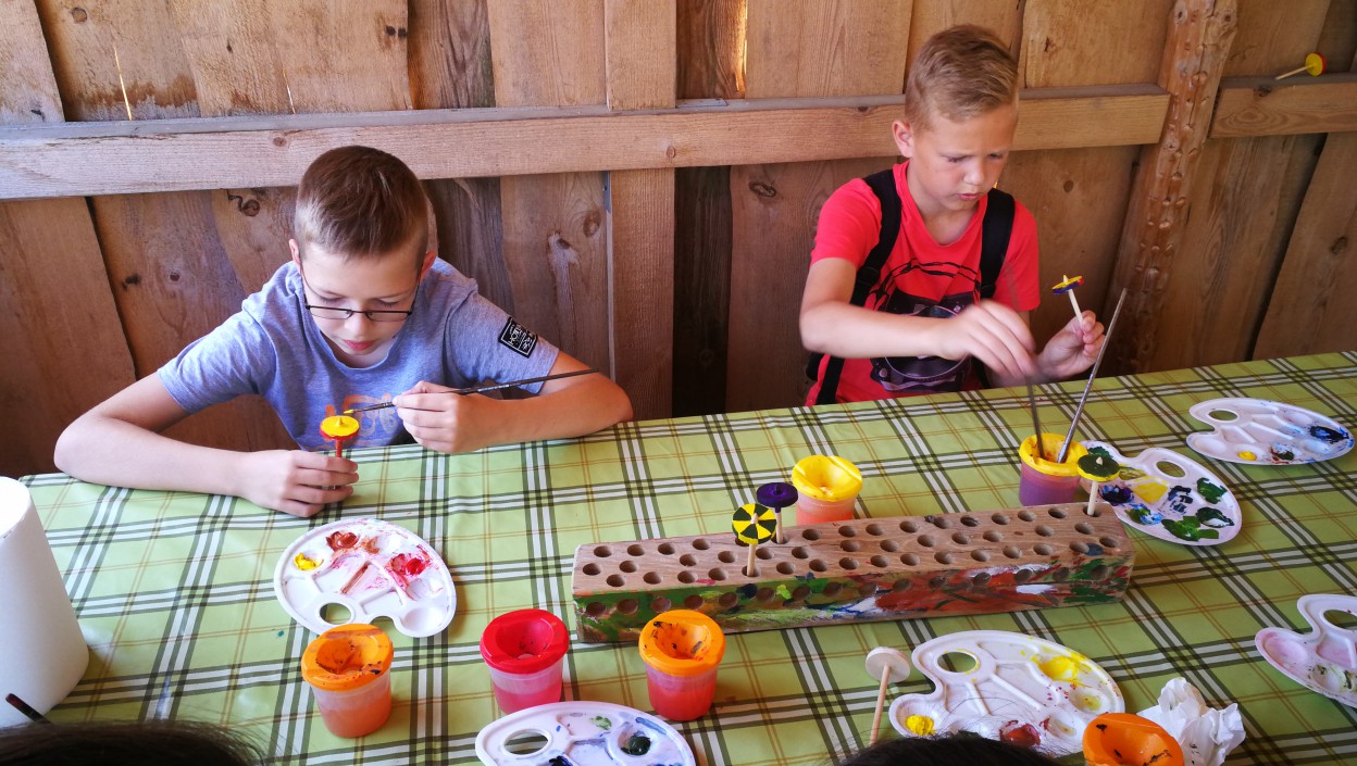 Užsiėmime „Medinių sukučių „vilkelių“ dekoravimas“ – vaikai iš naujo atranda vaikystę be išmanių technologijų. Kartu su tradicinių amatų meistru Artūru Narkevičiumi mediniai žaisliukai virsta spalvotais vaikų rankų darbo kūriniais. Puiki veltinio meistrė Leokadija Vilkienė vaikams atskleidžia veltinio dirbinių paslaptis.