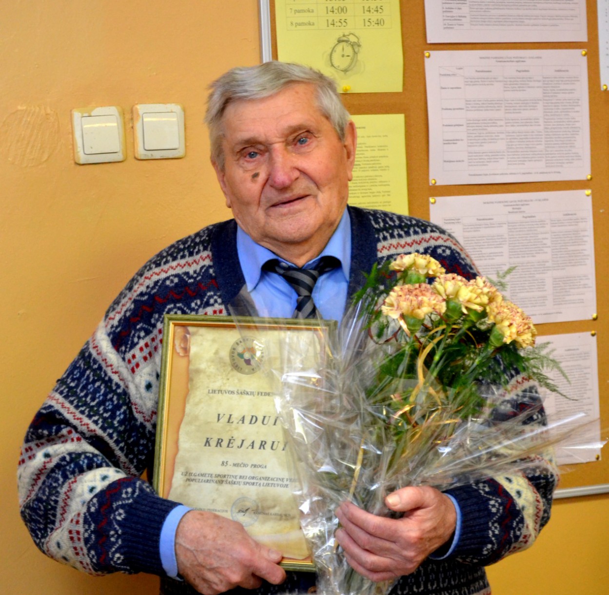 „Jis mums, kaip Jonavos sporto bendruomenei, yra labai reikšmingas ir brangus žmogus, - atvykusi sukaktuvininko pasveikinti kalbėjo Kūno kultūros ir sporto centro direktorė Regina Stupurienė, - kuris išugdė daug gerų šaškininkų. Džiaugiuosi, kad šis žmogus prisilietęs prie Jonavos šaškių, kad jis dirbo ir, kad treniruojami vaikai mėgo. Ir mes mėgome, nes jis santūrus, inteligentiškas ir kultūringas žmogus, toks koks turi būti šaškininkas ar šachmatininkas. Jūsų sporto šaka – tai inteligentiška sporto šaka“.