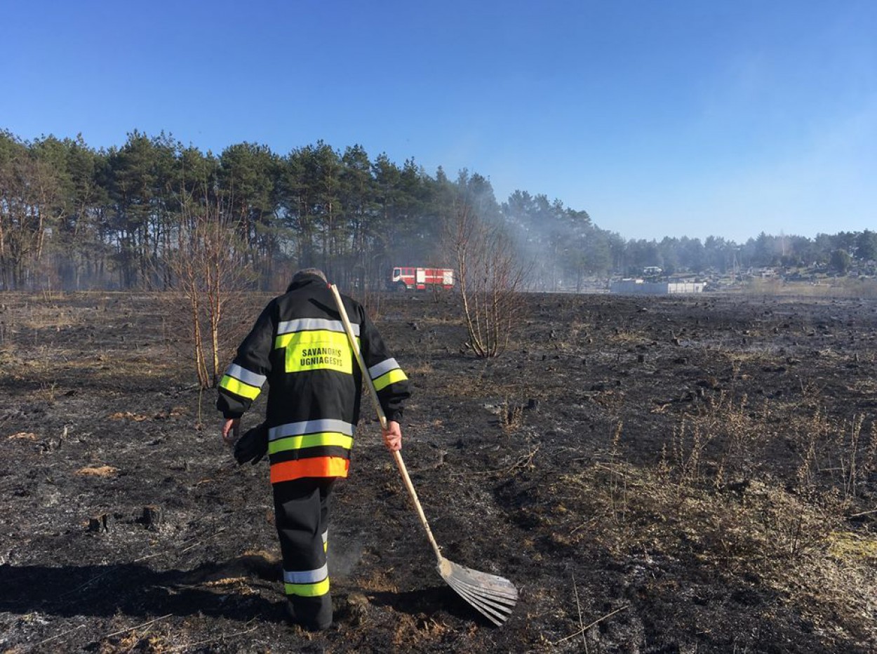 Užgesinus ugnį, prie kapinių budėta dar iki vėlaus vakaro – stebėta, ar iš likusių gaisro židinių nekils pakartotinės liepsnos.