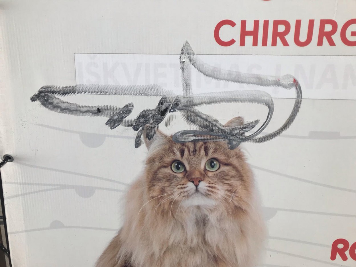 ,,Sekmadienio rytą vyras pamatė, kad sieną dengiantis tentas – apgadintas. Informavome policijos pareigūnus, tačiau praverstų ir liudytojų pasakojimai. Anksčiau ant šalia mūsų gydyklos stovinčio daugiabučio kabėjo kamera, bet pernai ji buvo nukabinta. Dėl to belieka tikėtis, kad yra žmonių, kurie viską matė“, - pasakojo ,,Sabveta“ direktorė Tatjana Sabestinienė.