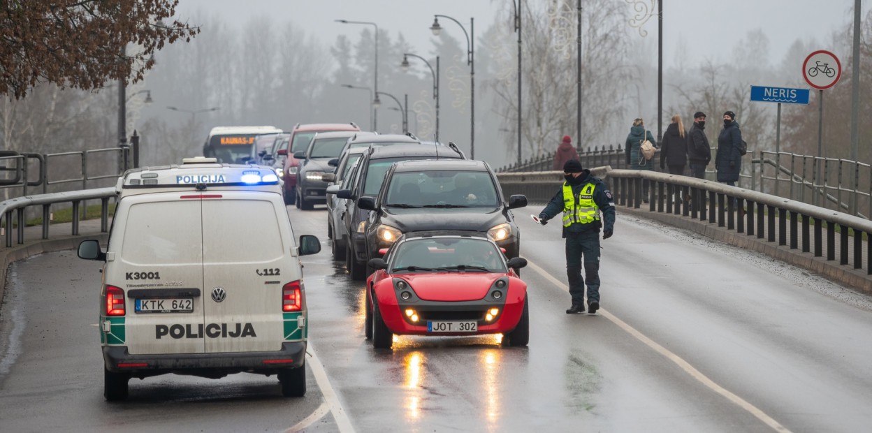 Judėjimo draudimas tarp savivaldybių Vyriausybės sprendimu įvestas nuo gruodžio 16-osios iki sausio 3-iosios siekiant sumažinti COVID-19 plitimą. Pirmąjį ribojimų savaitgalį policijos pareigūnai visoje šalyje neleido tęsti kelionės daugiau kaip 10 tūkst. automobilių.