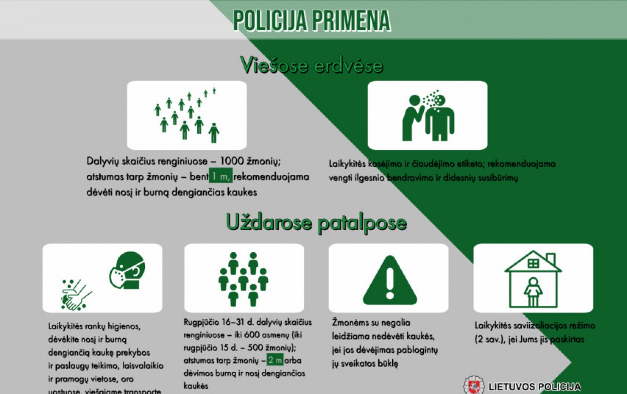 Visą savaitgalį, rugpjūčio 14 – 16 dienomis, Lietuvos policijos pareigūnai skirs ypatingą dėmesį asmenų, grįžusių ar atvykusių iš užsienio valstybių, kurių izoliavimo vieta namuose ar kitoje gyvenamojoje aplinkoje, tikrinimui dėl izoliavimo reikalavimų laikymosi.