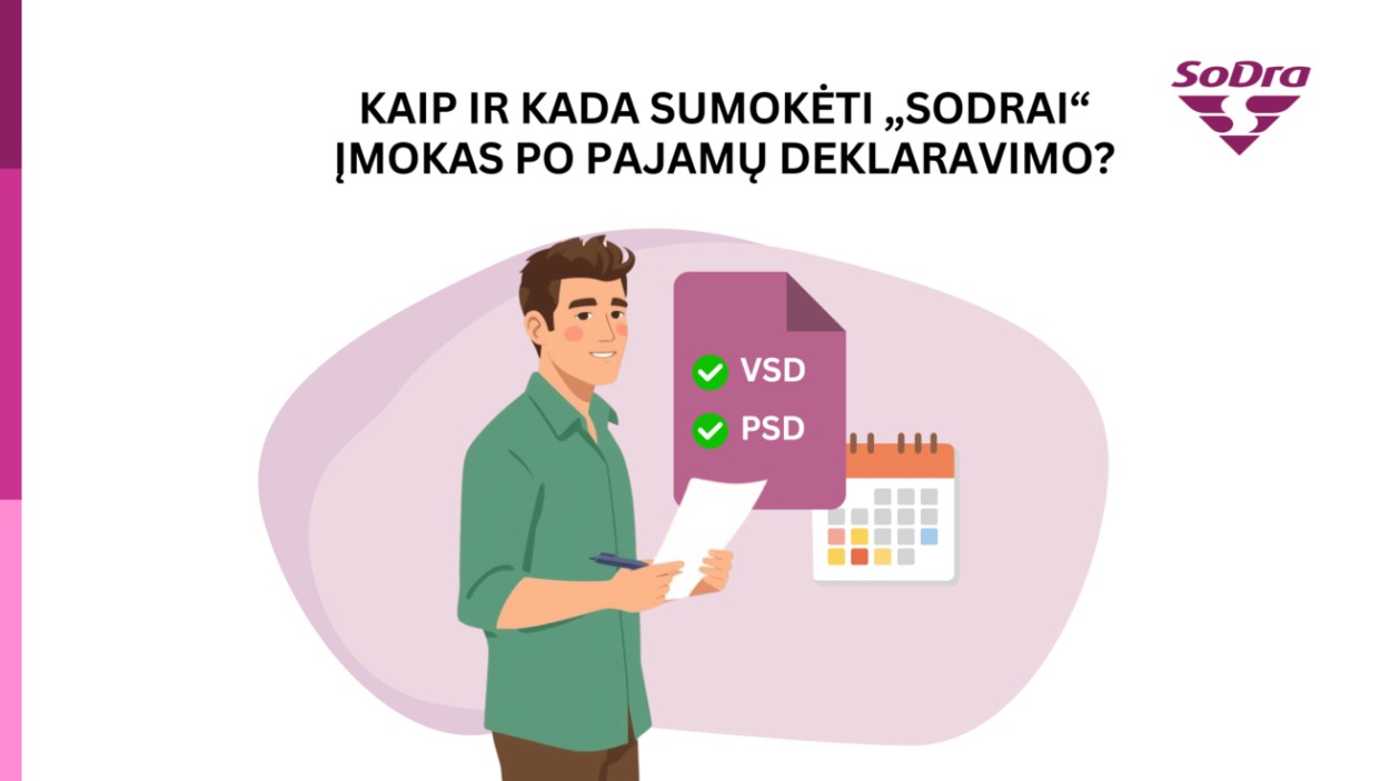 Savarankiškai dirbantys gyventojai, deklaravę pajamas, nuo uždirbtų pajamų turi sumokėti ir įmokas „Sodrai“. Informacija apie mokėtinas sumas ir galimybę kreiptis dėl įmokų mokėjimo dalimis pateikiama asmeninėse „Sodros“ paskyrose. Šiemet deklaravimo ir įmokų mokėjimo laikotarpis baigiasi gegužės 4 d.