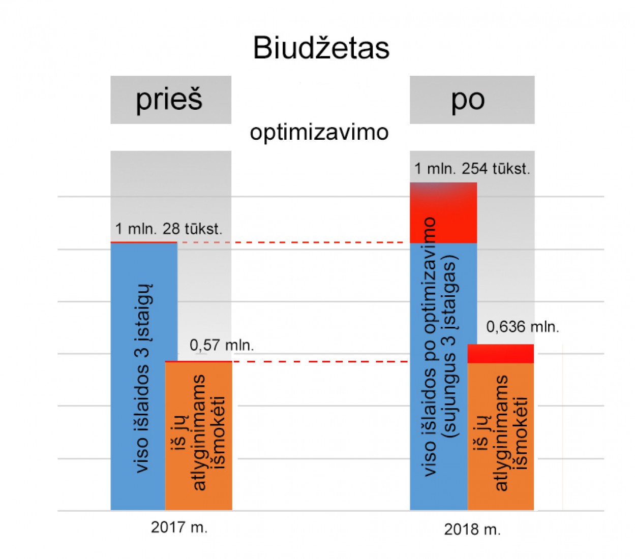 Logiškai mąstant, tikintis optimizavimo bendra trims įstaigoms skiriama suma turėjo mažėti. Juolab, etatų sumažėjo. Ir tai turėjo atsispindėti 2018 metų biudžete (žiniai - visas rajono biudžetas yra 38,8 mln. eurų.)