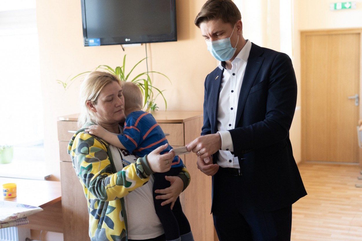 „Užtikrinsime visas būtiniausias paslaugas ir pasistengsime padaryti viską, kad Jonavoje bent trumpam pamirštumėte karo baisumus. Čia esate saugūs, jumis pasirūpins puikiausi mūsų specialistai ir visi jonaviečiai, kurie reiškia didelę paramą Ukrainai ir jos žmonėms“, - ukrainiečių šeimai sakė meras M. Sinkevičius.