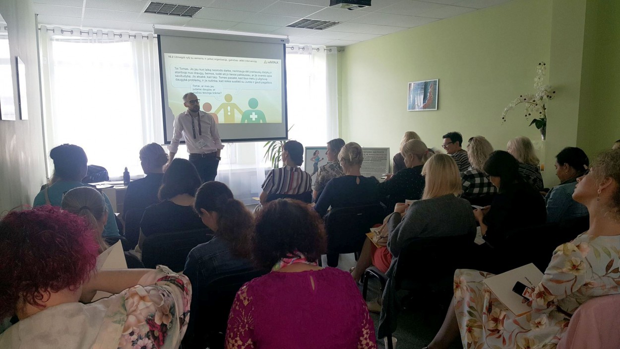 Rugsėjo 14 dieną Jonavos rajono savivaldybės visuomenės sveikatos biuro specialistai organizavo savižudybių prevencijos mokymus „safeTALK“, skirtus asmenims, norintiems išmokti atpažinti išgyvenančius krizę ir tinkamai reaguoti į savižudišką elgesį, nukreipti žmogų pagalbos link. Mokymus vedė organizacijos „LivingWorks Education“ paruošti ir sertifikuoti specialistai - lektoriai Mantas Jeršovas ir Rytis Rakauskas.