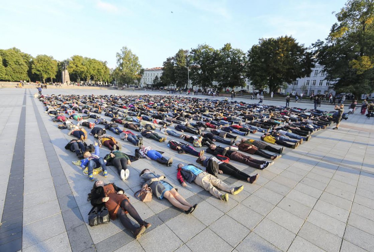 *apie savižudybių prevenciją yra kalbėjęs ir aktorius Arūnas Sakalauskas. A.Sakalauskas sostinėje buvo surengęs akciją, sulaukusią ir pasaulio žiniasklaidos dėmesio - minutei laiko ant aikštės grindinio sugulė beveik 1000 žmonių; tiek, kiek kasmet lietuvių pasitraukia iš gyvenimo.