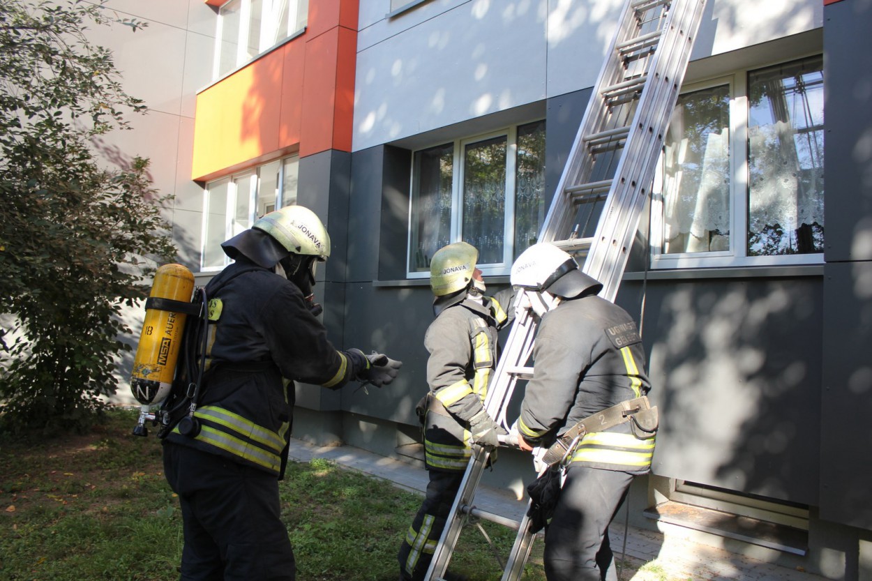 Trys Priešgaisrinės gelbėjimo tarnybos automobiliai, medikai ir policijos pareigūnai ketvirtadienio popietę skubėjo į Lietavos gatvės 27 namą. Bendruoju pagalbos telefonu pranešta, jog dega antrame aukšte esantis butas.