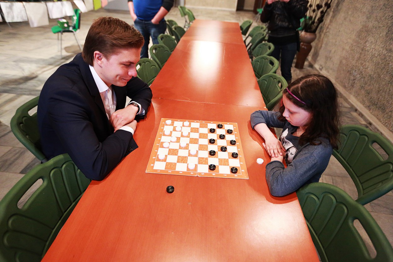 Po varžybų parodomąją šaškių partiją su nugalėtoja Karolina Šimkutė sužaidė ir pats rajono meras Mindaugas Sinkevičius. Jaunoji šaškininkai parodė šios sporto šakos gudrybes ir nepaliko galimybių merui bent sužaisti lygiosiomis.