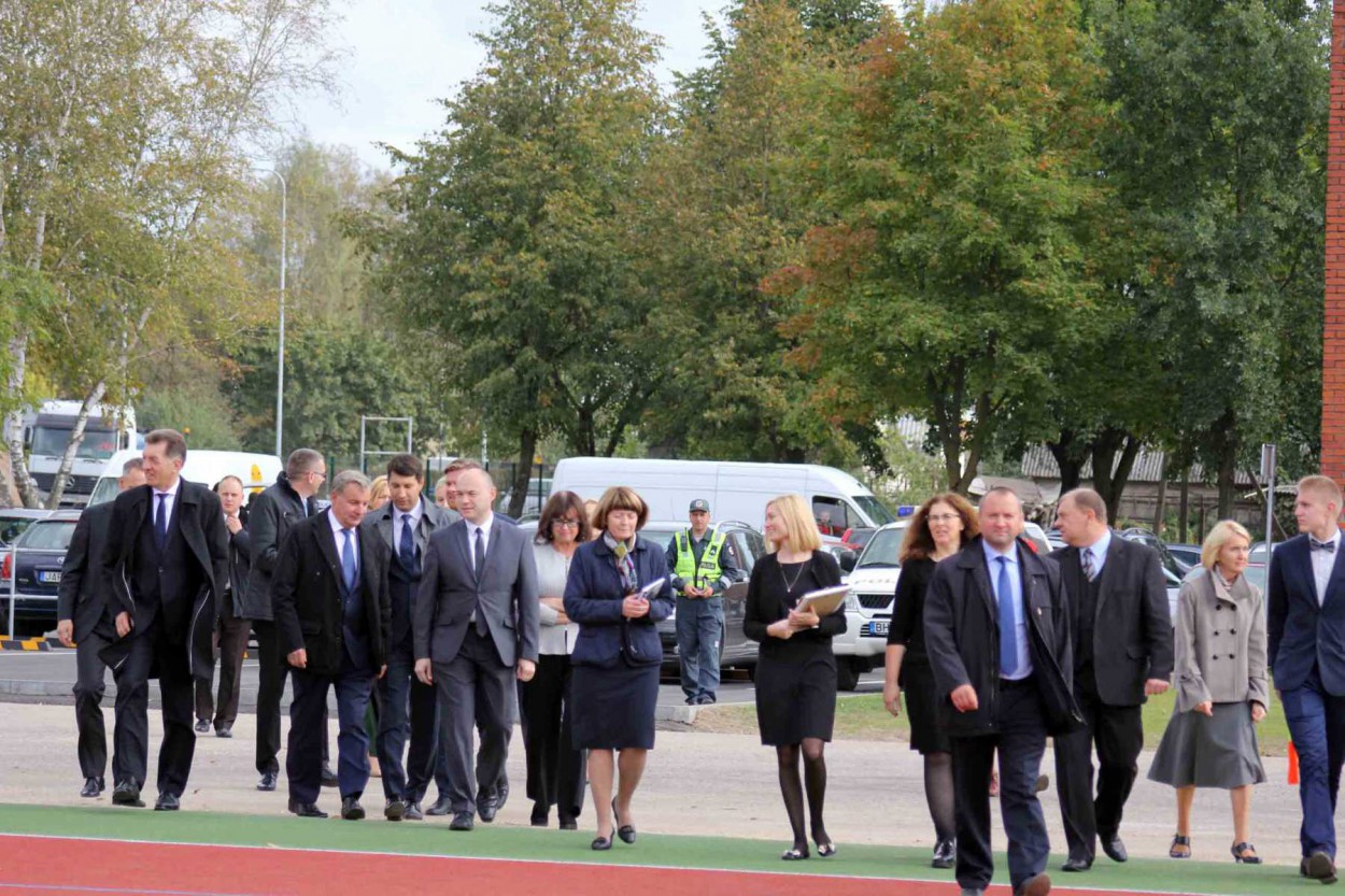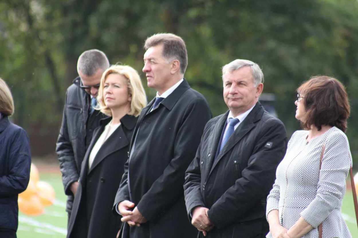 Sporto aikštyno atidarymo šventėje dalyvavo ne tik vietos valdžios atstovai -Senamiesčio gimnazijos bendruomenę sveikino į Jonavą atvykęs ministras pirmininkas Algirdas Butkevičius, Susisiekimo ministras Rimantas Sinkevičius.