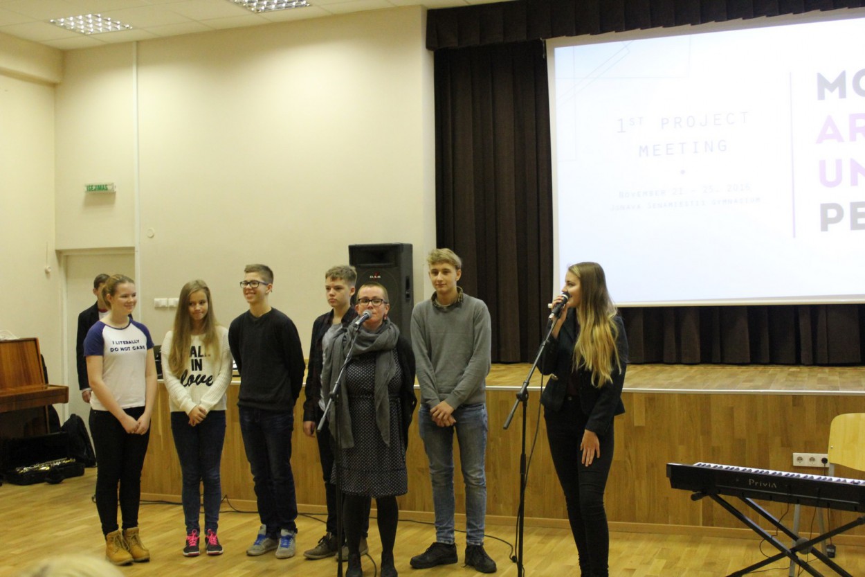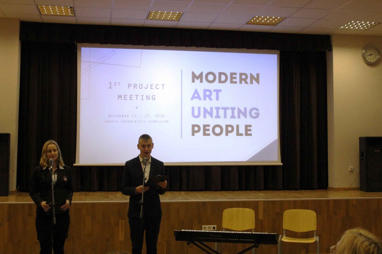 „Menai yra universali kalba, kuriai net nereikia žodžių. Vaizduotė, smalsumas, kūrybiškumas atveria kelius ir subtilesnį suvokimą, stiprina asmeninę raišką. Tikimės, kad mūsų partneriai, dalyvaudami šiame projekte, galės įvertinti ne tik lietuvių kūrybiškumą, bet ir išsiveš naujų idėjų į savo mokyklas“ , - renginio pradžioje į auditoriją kreipėsi renginio vedėjas.