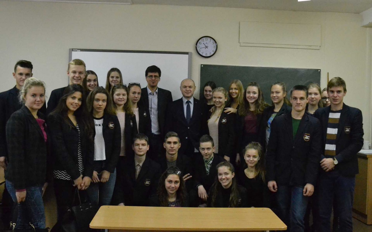Jonavos rajono savivaldybės mero pavaduotojas Eugenijus Sabutis supažindino mokinius su savivaldos struktūra bei funkcijomis, pasakojo, kaip klostėsi asmeninė karjera iki dabar užimamų pareigų. Buvęs gimnazistas, dabar Jonavos rajono savivaldybės Teisės ir personalo skyriaus vedėjas Justas Budriūnas linksmai ir gyvai pristatė teisininko profesiją.