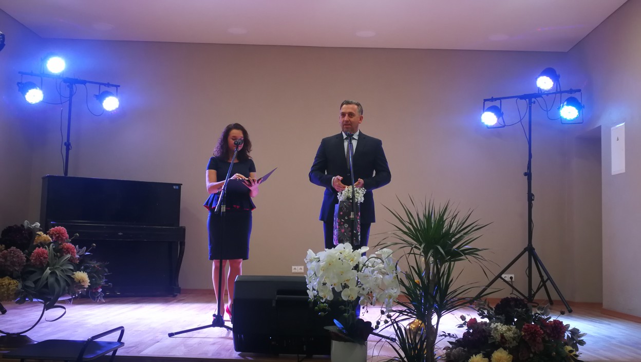 Atnaujintoje scenoje sveikinimo žodžius bukoniškiams skyrė mero pavaduotojas Eugenijus Sabutis, sakydamas, kad net nesinori prisiminti, kokie kultūros namai buvo prieš renovaciją, bet dabar pasiektas puikus rezultatas. Administracijos direktoriaus pavaduotoja Birutė Gailienė džiaugėsi susirinkusiųjų gausa. Seniūnas Arturas Narkevičius pasveikinęs minią įteikė dovaną Bukonių kultūros centro vadovei Karolinai Petrenčiuk - Naujokienei, kuri teigė esanti dar neverta dovanų, tačiau tikinti, kad ateityje visi kartu pasieks trokštamų rezultatų organizuojant renginius. Scenoje kalbėjęs Jonavos kultūros centro direktorius Sergejus Jefimenka prasitarė, kad jau dabar planuojami renginiai, o lapkričio mėnesį bendruomenė bus pakviesta į šventę „Trenk polkutę“. Sveikinimus bei dovanas skyrė ir kitų Jonavos kultūros centro filialų, bendruomenių atstovai, gyventojai.