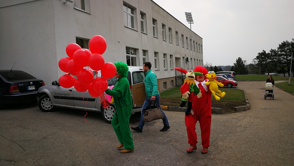 Balandžio 16 dieną duotas Raudonos nosies akcijos startas. Akcijos klounai apsilankė Jonavos ligoninės vaikų skyriuje nešini dovanomis. Personalui įteikta akcijos klounų nuotrauka, o vaikams skirti balionai ir obuoliai. Kiekvienas palatoje aplankytas vaikas liko pralinksmintas ir pradžiugintas nenustygstamu kluonu entuziazmu ir gera nuotaika.