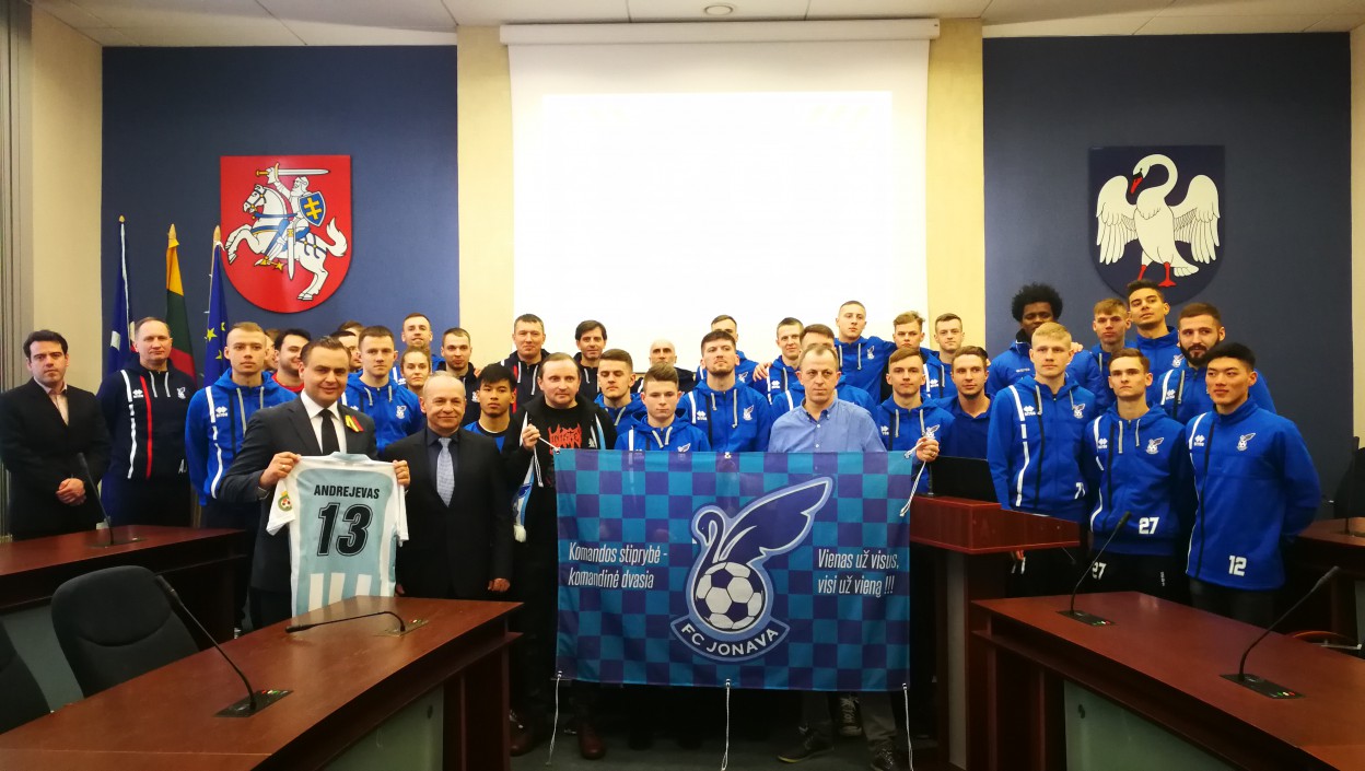 Klubo direktorius Zenius Kamarūnas įteikė ekipos marškinėlius Jonavos rajono savivaldybės atstovui mero pavaduotojui Erlandui Andrejevui. Mero pavaduotojas šiuo metu pavaduoja į užsienį išvykusį miesto merą Eugenijų Sabutį. E. Andrejevas pasidžiaugė, jog komanda gali demonstruoti gerus rezultatus turėdama daug lietuvių.