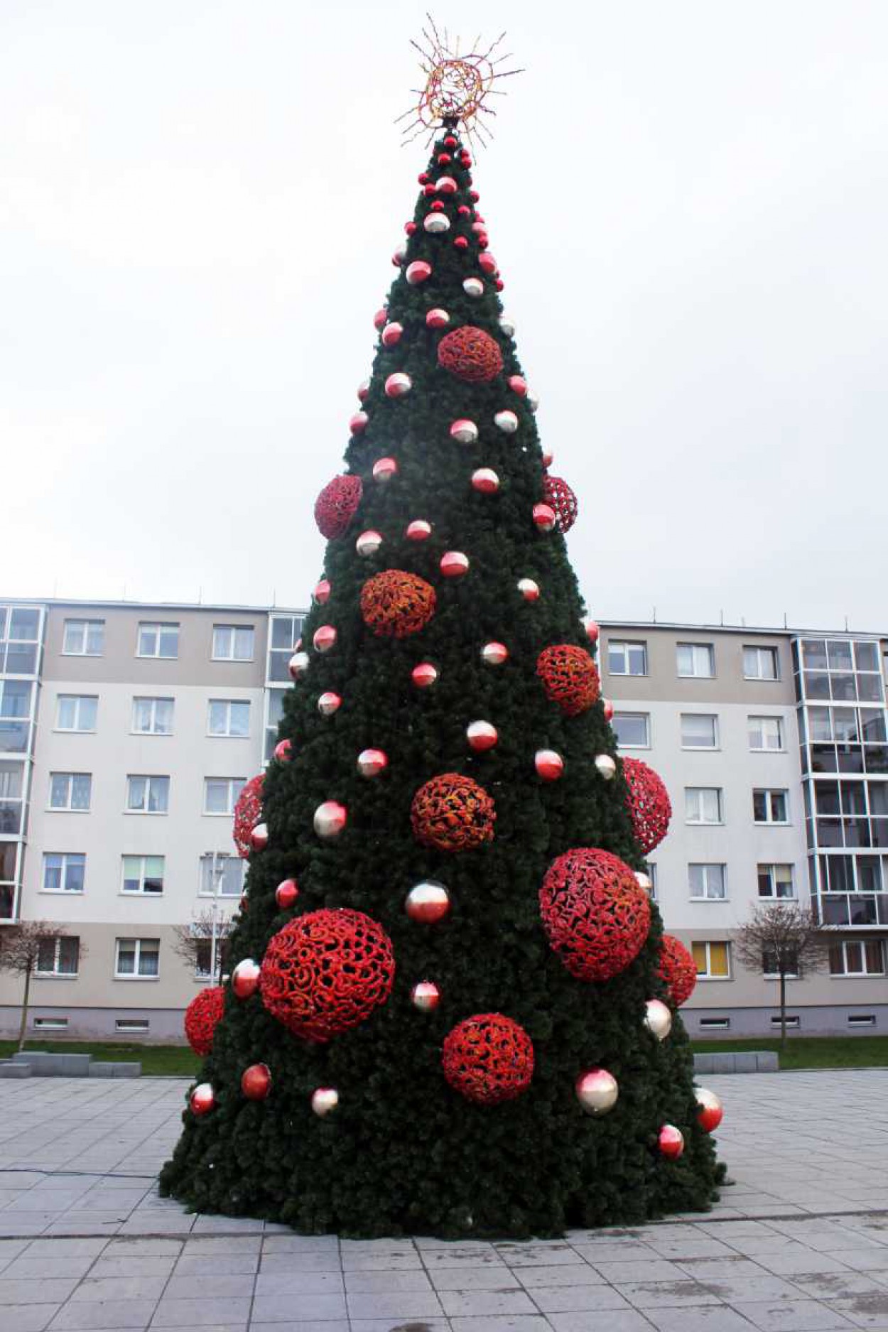 Pagrindinėje Jonavos miesto aikštėje šiemet pastatyta 13 metrų aukščio dirbtinė eglė, kurios žalioji dalis suformuota ant karkaso. Ji papuošta masyviomis purpurinėmis dekoracijomis. Šiais metais Jonavos erdvių papuošimu, taip pat kalėdine eglė rūpinosi menininkė Jolanta Šmidtienė. Beje, ji rūpinosi ir Kauno eglės papuošimu.