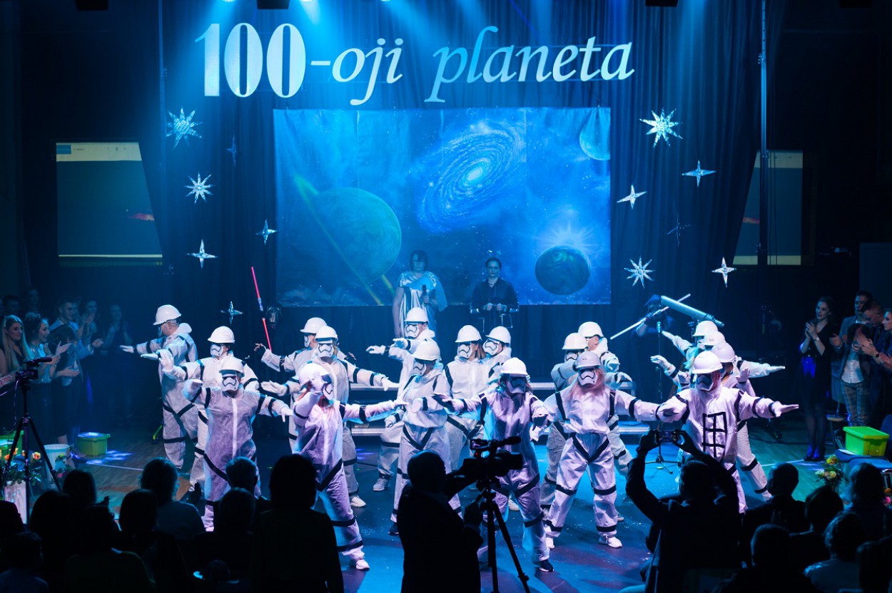 Būsimųjų šių metų Senamiesčio gimnazijos abiturientų šimtadieniui pasirinkta tema „100-oji planeta“ iš anksto kvietė gilintis į kosmoso platybių pasaulį.