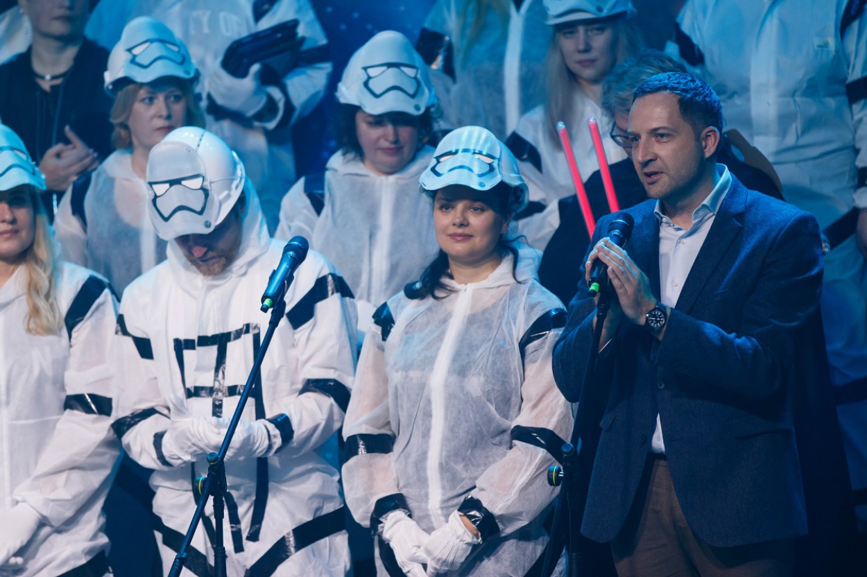 Gausus abiturientų tėvelių būrys tapo kosmoso kariais! Ir šokiu, ir žodžiais jie aršiai kovojo už mokinius, įstrigusius astronominėje patrankoje, įsipareigojo apginti ir teikti skubią pagalbą. Be to, visų ketvirtokų tėvų vardu padėkos žodį tarė Kristina Šeštokienė ir Kęstutis Macionis.