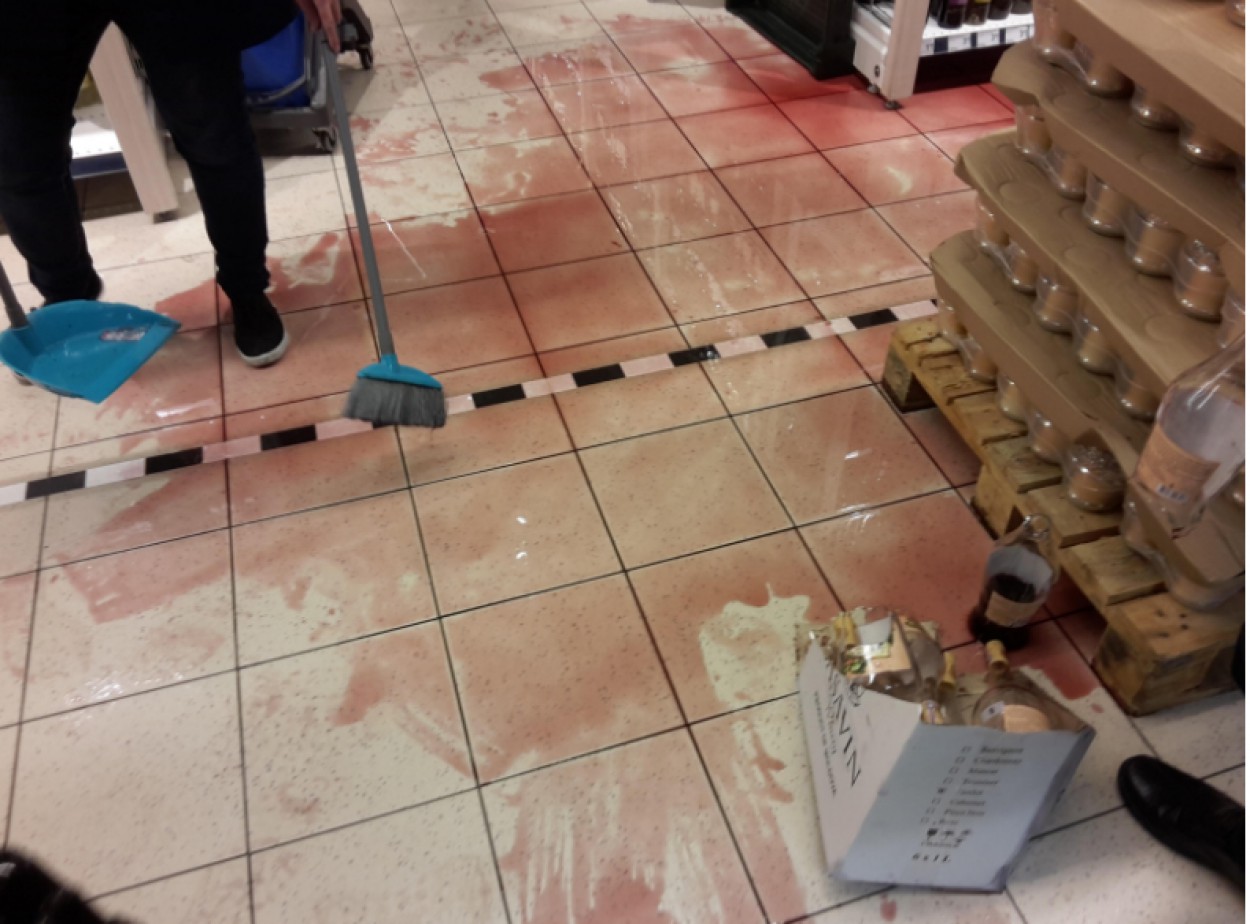 Vyriškis, išsigandęs ir pasimetęs, ruošėsi susimokėti, tačiau visą situaciją stebintys žmonės pradėjo reikšti pretenzijas, kodėl vyriškis turi sumokėti už ne vietoje pastatytas dėžes. Pamainos viršininkė pasišalino ir visą situaciją stebėjo iš šalies.