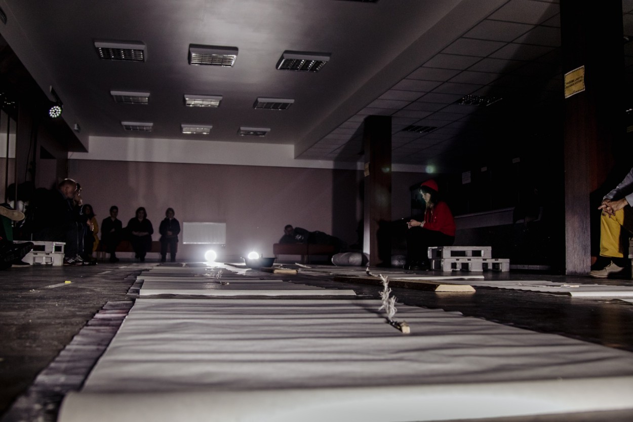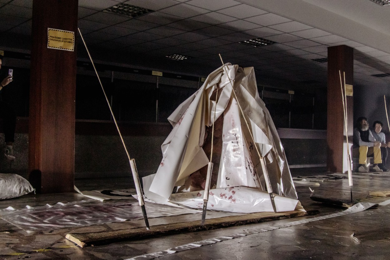 Šeštadienį žiūrovus didžiojoje rūbinėje pasitiko režisieriaus, aktoriaus, visą savo gyvenimą einančio prieš vėją menininko Beno Šarkos performansas ,,MINKI MINKI MINKI“. Į medį smingančio peilio garsas, nuasmeninto kūno kalba, čia pat sukurtos liepsnos kaitra ir iš pelenų pagamintais dažais kuriami sąmonės diktuojami simboliai kvietė pasivaikščioti po savo sąmonės ir pasąmonės gelmes, ieškant ryšio su žeme, stichijomis ir amžinai nekintančiu gyvybės pradu. Performansą baigęs menininkas nieko nepaaiškino, žiūrovus paliko vienus svarstyti, ką matė, teištaręs ,,išeikite pro duris“.