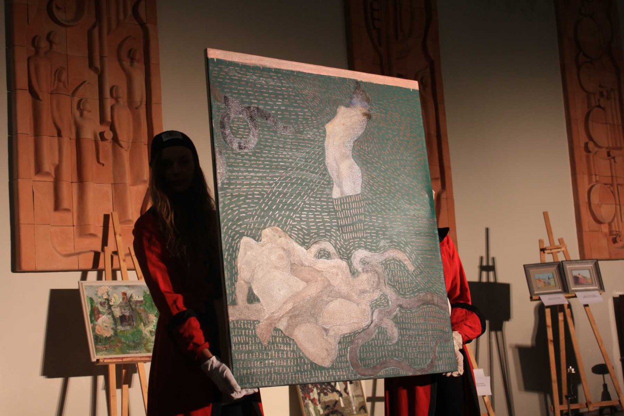 „Tai paroda tarsi iš penkių estafečių – piešimas, keramika, grafika, specifinių technologijų tapyba su emaliniais dažais ir akademinė tapyba. Visa tai randa keistą sąskambį.
