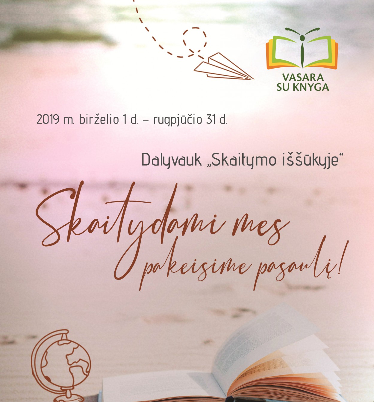 „Skaitymo iššūkis“ kviečia įvairaus amžiaus skaitytojus aktyviai dalyvauti ir pasinerti į knygų pasaulį, domėtis skaitymu, literatūra, dalytis ja su bičiuliais ir išmėginti laimę prizų loterijoje. Visą vasarą skaitykime knygas, juk skaitydami mes pakeisime pasaulį!