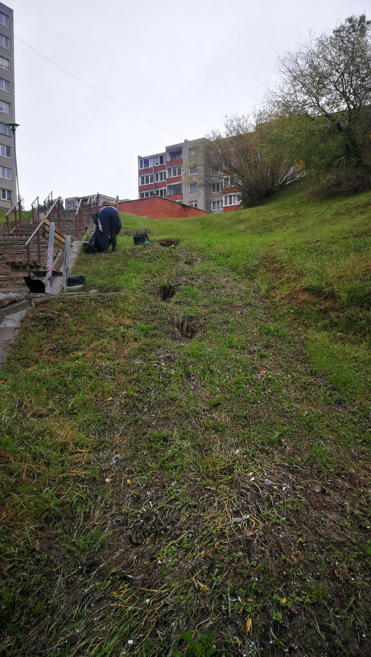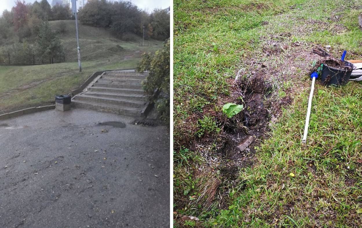 „Šioje vietoje įrengtas nuvedimo vamzdis. Jis turėjo gelbėti nuo "grotų" pastato, esančio laiptų viršuje, užsėmimo. Šiame pastate įrengta brangi įranga, todėl prieš keletą metų ir buvo priimtas toks sprendimas – išvesti vamzdį per kurį nubėgtų per didelis kritulių kiekis. Sutinku, kad šio vamzdžio išvedimas nėra tinkamas. Jį reikia sujungti su esamais nuotekų tinklais, nuotekas nukreipti į valymo įrengimus, kad nuotekų tvarkymas atitiktų visus reikalavimus ir jos neterštų gamtos.