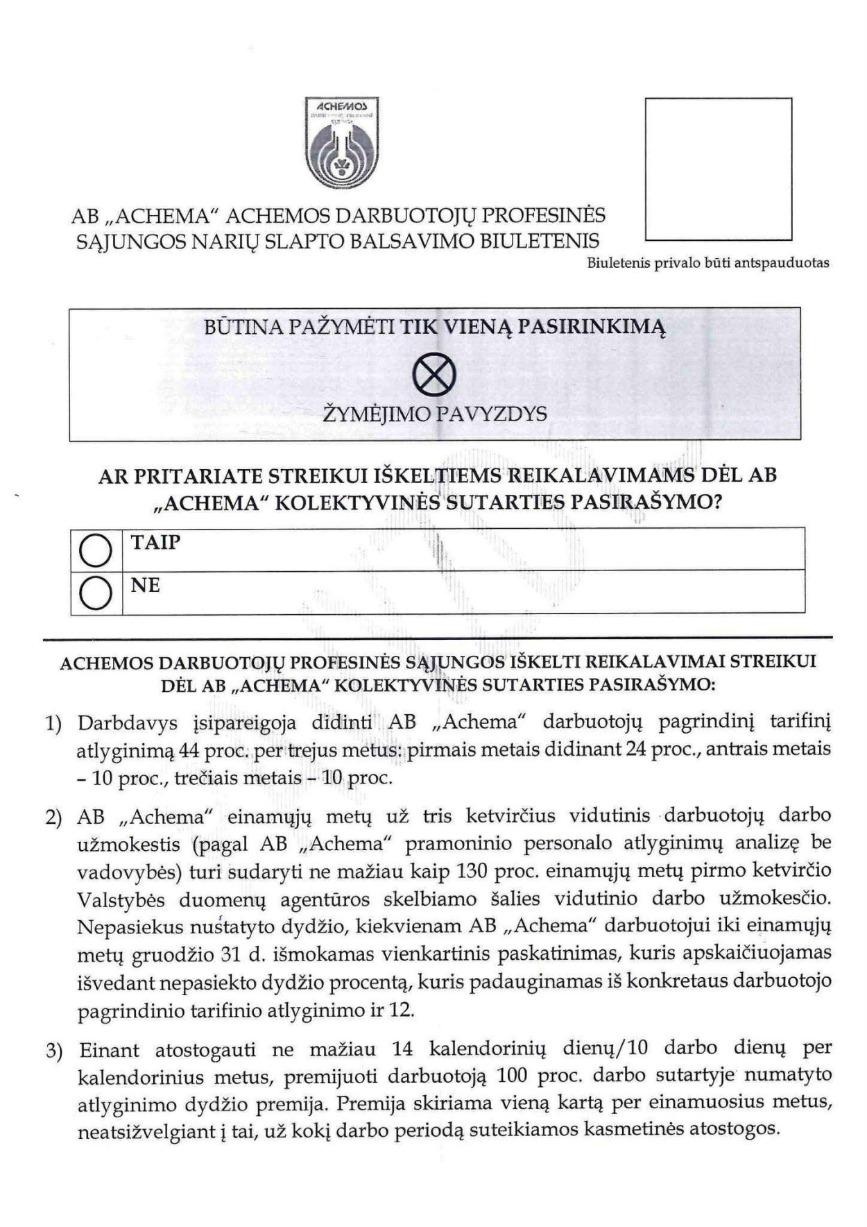 Achemos darbuotojų profesinėje sąjungoje adresu J. Basanavičiaus g. 22, Jonava nariai kviečiami balsuoti: