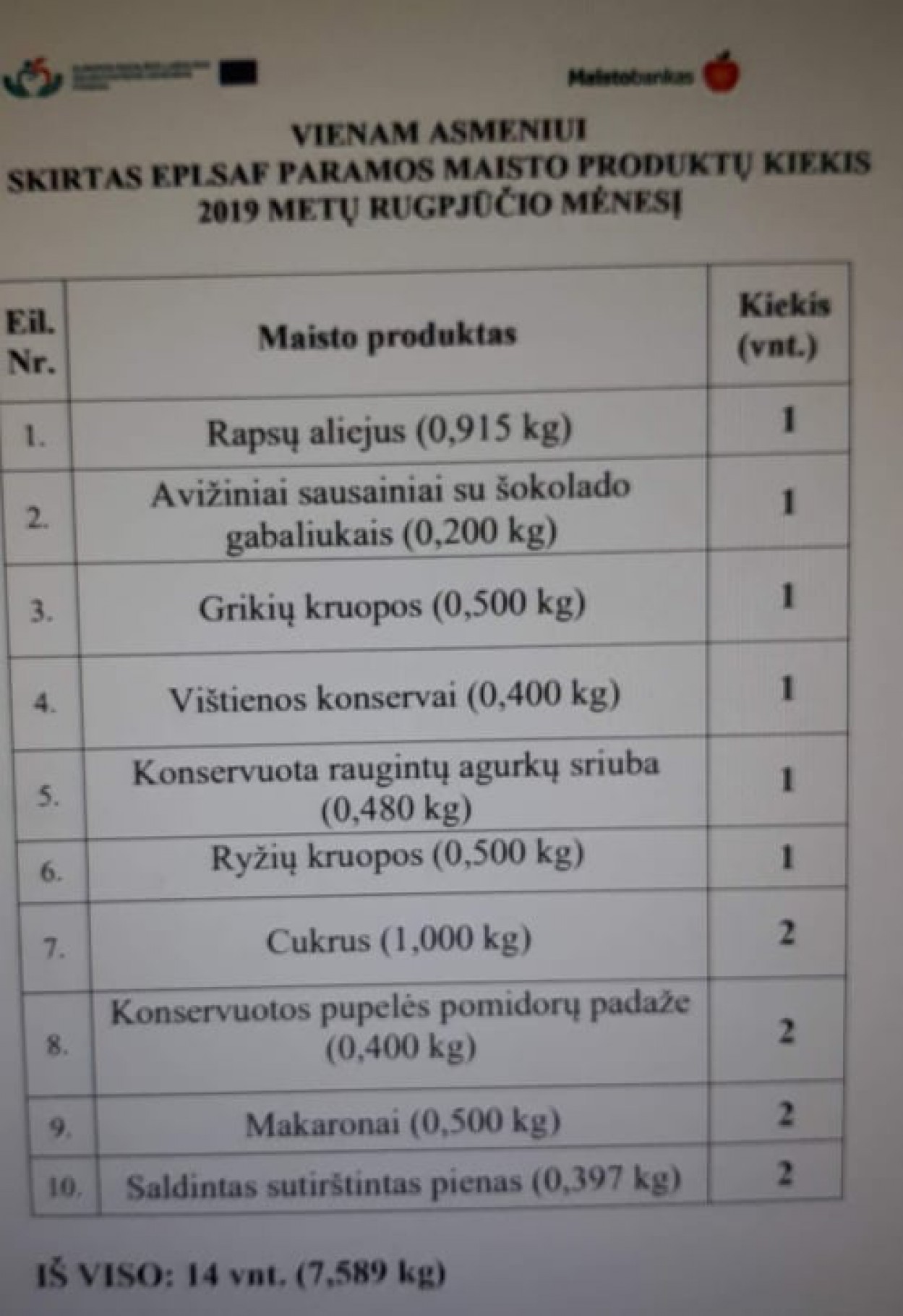 Skelbiamas Europos pagalbos labiausiai skurstantiems asmenims fondo (EPLSAF) maisto paketų dalinimo grafikas Jonavos rajono savivaldybėje (rugpjūčio mėn.) :