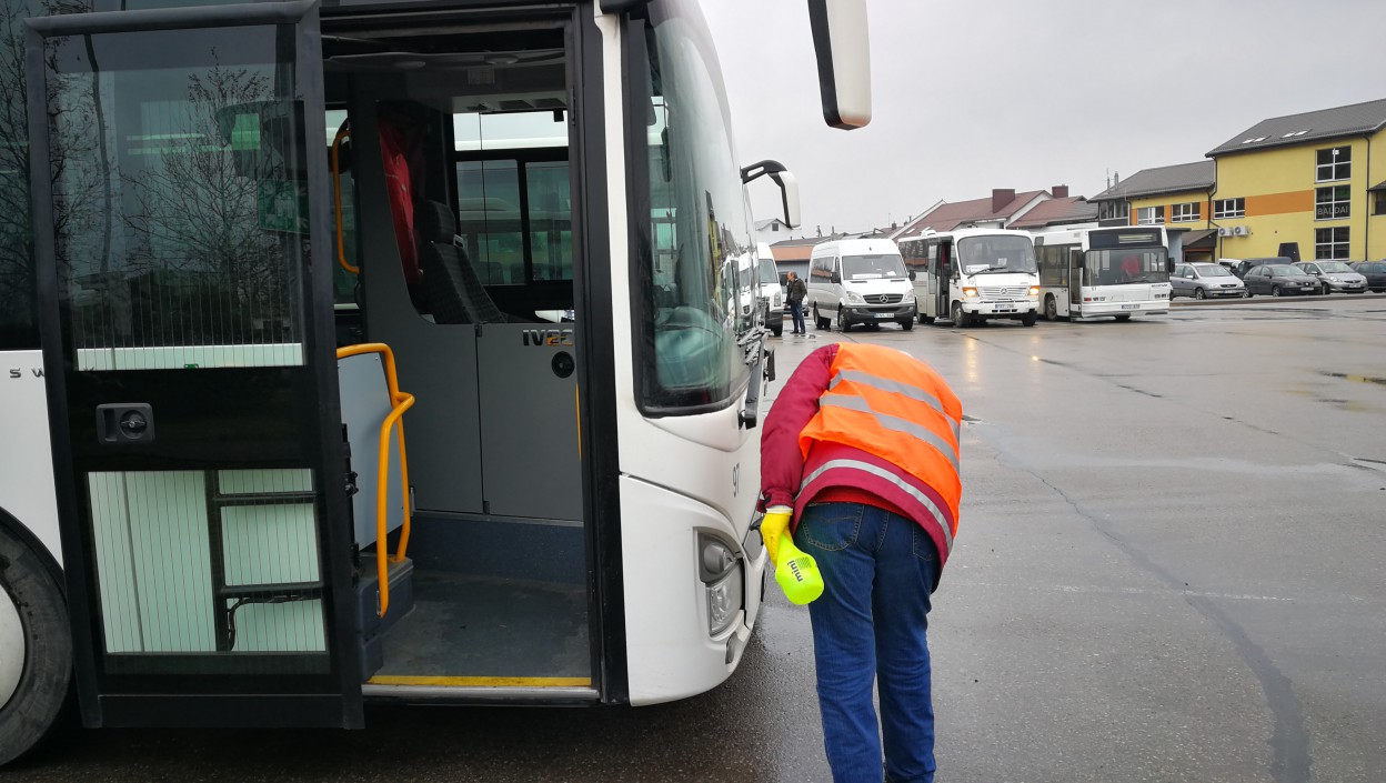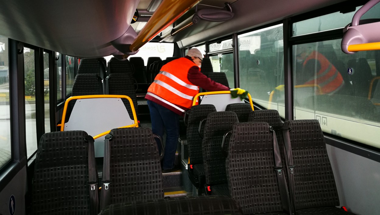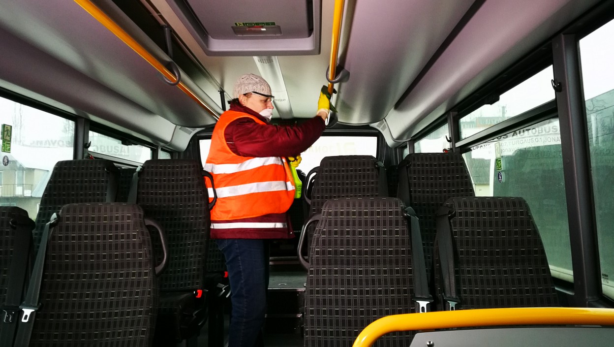 „Dezinfekcija pas mus vyksta jau savaitę. Dalį skysčio esame gavę, bet be abejo – jo trūksta, nes dezinfekuojamas ne tik transportas, bet ir laukimo salės, kitos patalpos. Autobusai dezinfekuojami trim būdais. Vieną, du kartus per dieną, reisinės pertraukos metu, skysčiu valomi turėklai ir atramos. Antras etapas, kurį pradėsim intensyviau naudoti, nes gavom specialaus dezinfekcinio skysčio – vakare bus purškiami visi autobusų salonai. Taip pat, suintensyvinom giluminį autobusų salonų plovimą su tam tikrom priemonėm“, - pasakoja UAB „Jonavos autobusai“ direktorius Otaras Urbanas bei priduria, kad toks apsisaugojimas reikalingas ir keleiviams, ir darbuotojams, nes dirbama ne tik Jonavos rajone, bet ir kituose miestuose. Todėl prevencija vykdoma dviem kryptim – keleivių ir darbuotojų apsauga.