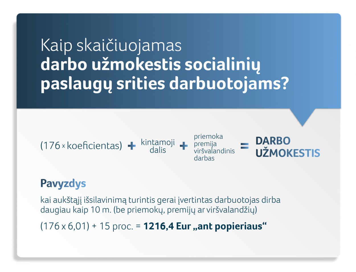 Jame nurodoma, kokie minimalūs koeficientai turi būti taikomi konkrečioms biudžetinių įstaigų pareigybėms apskaičiuojant pastoviąją pareiginės algos dalį. Socialinių paslaugų srities darbuotojams įstatyme nustatyti minimalieji pareiginės algos pastoviosios dalies koeficientai didinami 20 procentų. Apskaičiuojant darbo užmokestį, darbuotojo koeficientas yra dauginamas iš bazinės pareiginės algos dydžio, kuris siekia 176 eurus.